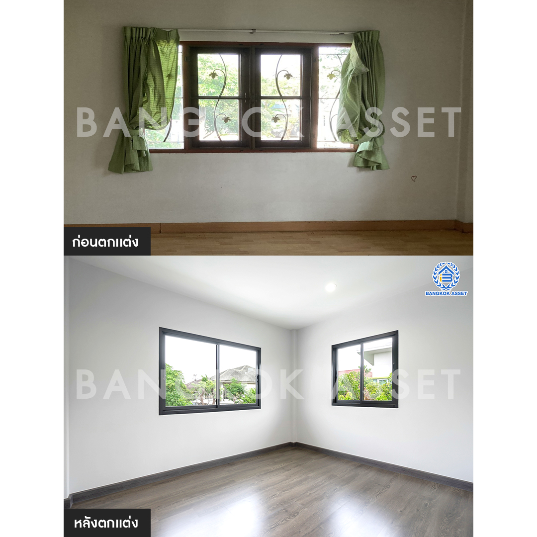 ห้องนอนทุกห้องเราเปลี่ยนเป็นพื้นลามิเนตให้ใหม่ทั้งหมด ให้ความสวยงาม คงทน และนิยมใช้ในบ้านยุคใหม่ โดยคุมโทนสีภายในห้องเป็นโทนขาวสว่าง เพิ่มความรู้สึกผ่อนคลายให้กับผู้อยู่อาศัยอีกด้วย