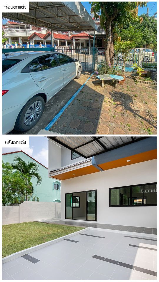 จากนั้นก็ทำการเปลี่ยนสีบ้าน ให้เป็นสีโทนสบายตา และยังปรับเปลี่ยนรั้วให้ดูสวยงาม ทันสมัยรับกับตัวบ้านอีกด้วยครับ