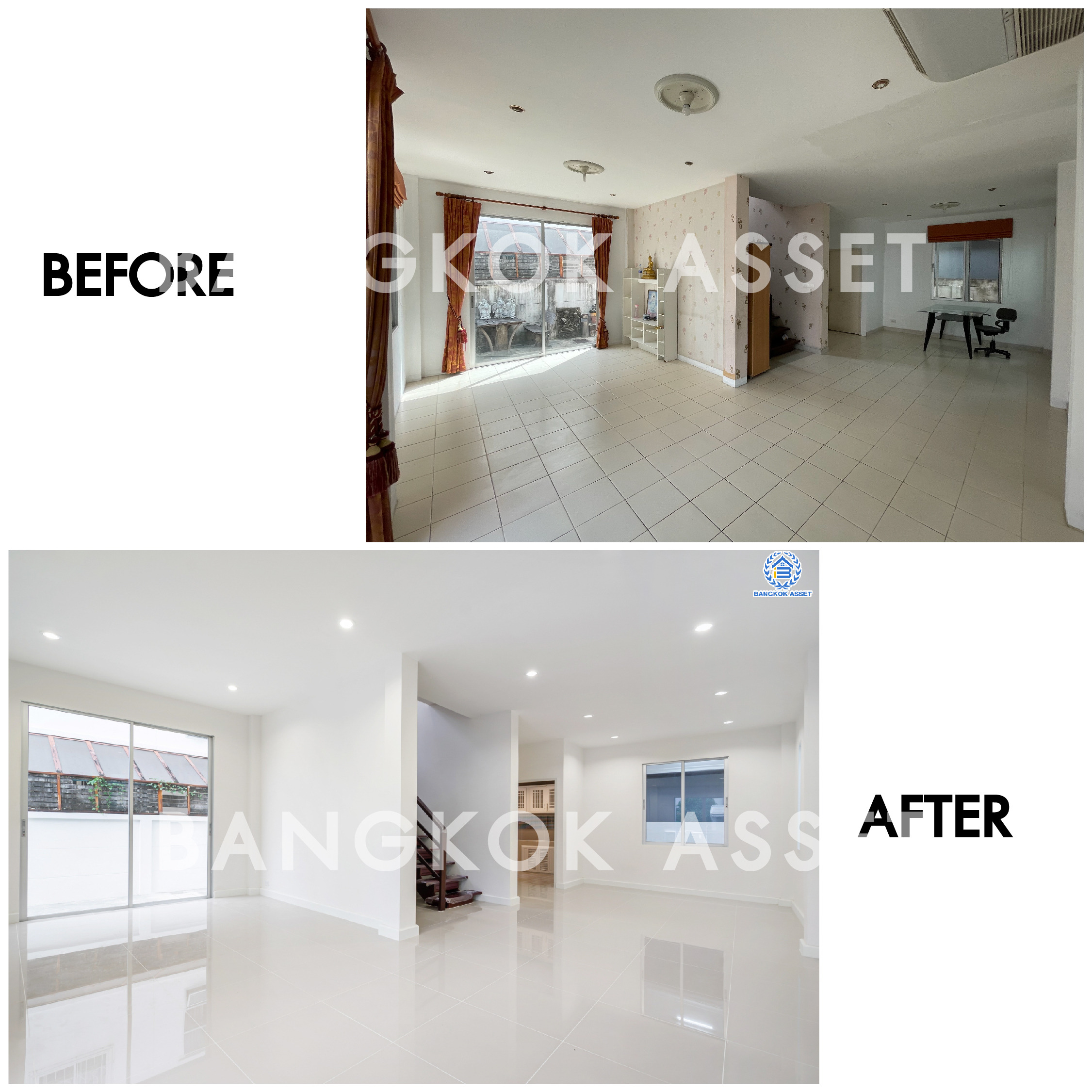 อีกผลงานการรีโนเวทบ้าน โดย #บางกอกแอสเซท ครั้งนี้ บ้านเก่าโดยเฉพาะบ้านที่สร้างมานานหลายปี มักมีปัญหาตามมาให้แก้ไขอยู่เสมอ โดยเฉพาะภายนอกเป็นส่วนที่ต้องเผชิญกับสภาพอากาศที่ต้องเจอแดด เจอฝนต่อเนื่องมาหลายปี เรามีหน้าที่เปลี่ยนโฉมให้บ้านเก่า กลับมาเป็นบ้านสวยใหม่เหมือนวันแรกที่เปิดขาย ด้วยบริการรีโนเวทบ้านก่อนขายของเรา ช่วยให้มีผู้สนใจมีจำนวนมากขึ้นด้วย จะมีสภาพเปลี่ยนแปลงแค่ไหนมาดูกันครับ