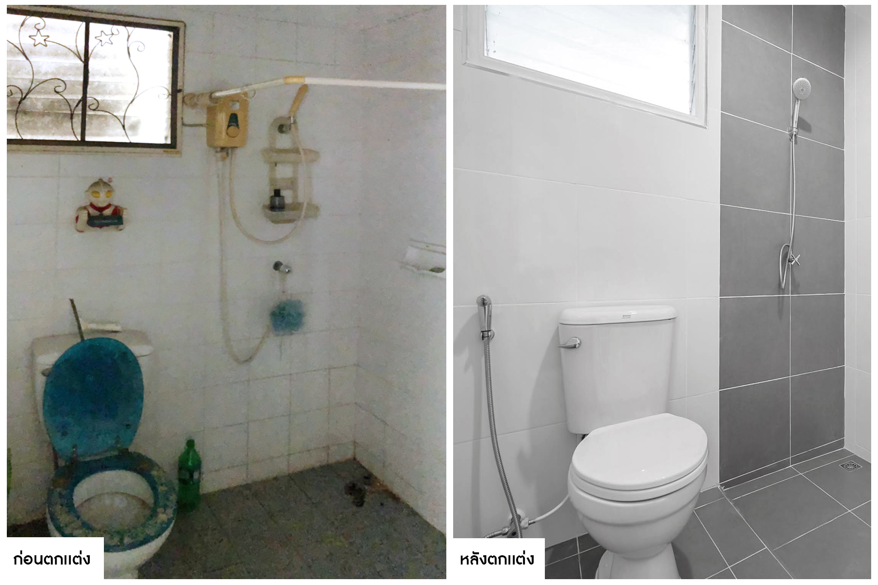 เปลี่ยนห้องน้ำเก่าให้เป็นห้องน้ำดีไซน์ทันสมัย ตกแต่งด้วยวัสดุคุณภาพ ตั้งแต่ปูกระเบื้องกันลื่นจรดผนังเพื่อความปลอดภัยและง่ายต่อการทำความสะอาด และสุขภัณฑ์คุณภาพ ครบครันทุกฟังก์ชั่นการใช้งาน แบบพร้อมอยู่อาศัยกันเลยครับ
