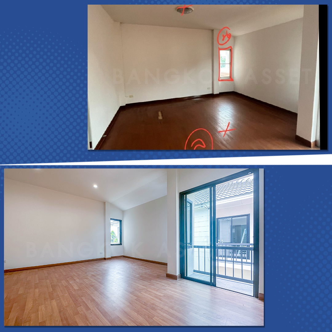 ห้องนอนทุกห้องเราเปลี่ยนพื้นไม้ลามิเนตลายเหมือนไม้จริงให้ทุกห้อง พร้อมติดตั้งไฟดาวน์ไลท์ใหม่ทั้งหมด รวมไปถึงประตูหน้าต่างก็เปลี่ยนให้ทั้งหมด เพิ่มความโมเดิร์นให้บ้านทั้งหลัง