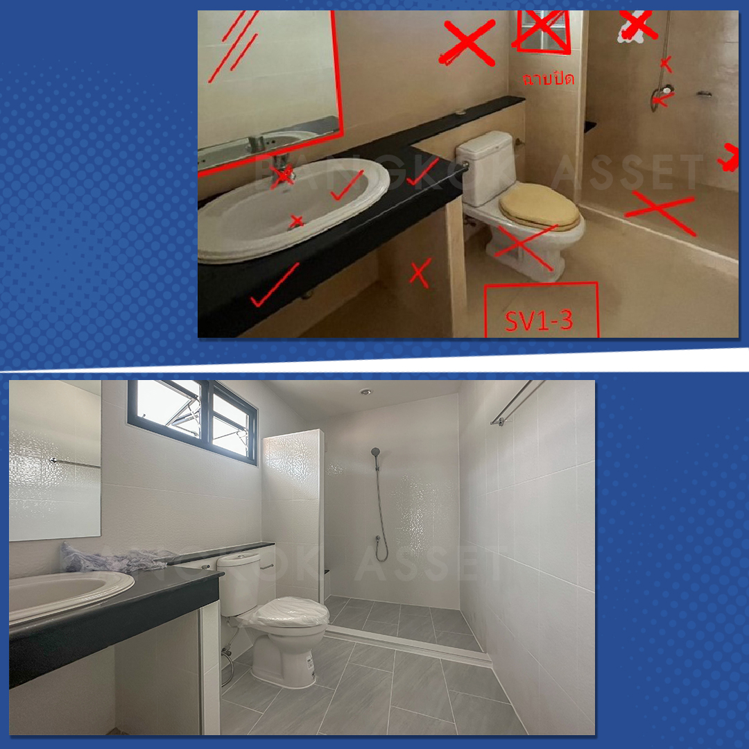 ห้องน้ำเปลี่ยนสุขภัณฑ์ใหม่ทุกห้อง พร้อมเปลี่ยนกระเบื้องพื้นแบบกันลื่น และกระเบื้องทั้งหมด ส่วนเรื่องระบบระบายน้ำต่าง ๆ และระบบไฟฟ้าเราก็ดูแลให้พร้อมใช้งาน 100% ทั้งบ้านเลยครับ