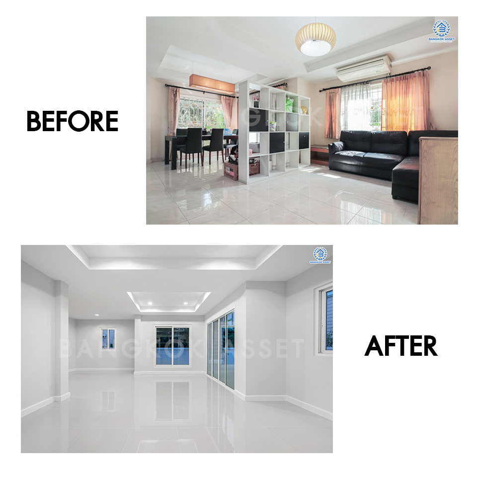 อีกผลงานการรีโนเวทบ้านโดย #บางกอกแอสเซท บ้านที่ผ่านการใช้งานมาแล้วย่อมมีการเสื่อมสภาพหรือตกยุคตกสมัยไปตามกาลเวลา ซึ่งภารกิจหลักเราคือการทำให้บ้านกลับมาใหม่สวยเหมือนวันแรกที่เปิดขายอีกครั้ง ด้วยการเปลี่ยนวัสดุให้ใหม่ทั้งหมด ก่อนที่บ้านหลังนี้จะได้ไปอยู่กับเจ้าของคนใหม่เราต้องดูแลอย่างดีก่อนส่งมอบแน่นอน เริ่มจากทาสีใหม่ ปรับเปลี่ยนพื้นที่ลานจอดรถ ด้วย การทำพื้นทรายล้าง ป้องกันการลื่นได้ดี เป็นเอกลักษณ์เฉพาะของบ้านบางกอก ข้างนอกสวยแล้ว ข้างในก็สวยไม่แพ้กัน เชิญรับชมเพิ่มเติม...
