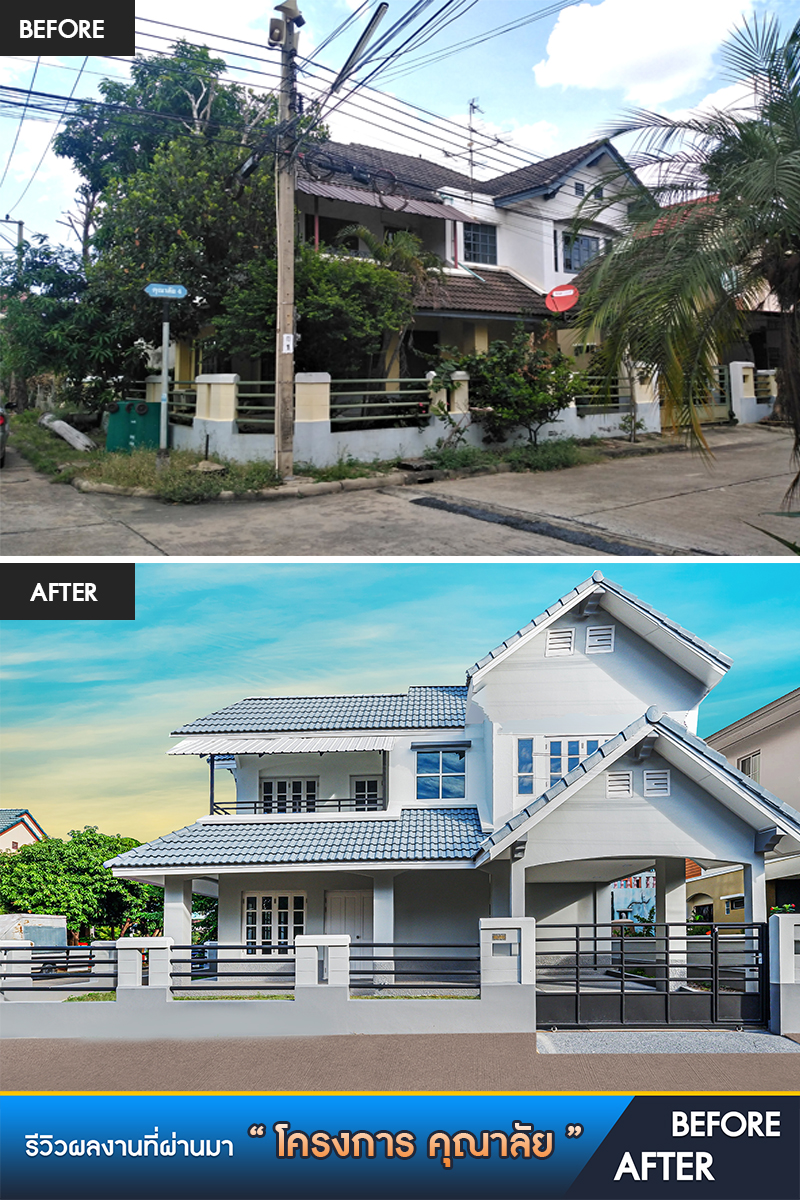 จากบ้านเก่าที่ผ่านการใช้งาน เราได้แปลงสภาพตกแต่งใหม่ทั้งหลัง ไม่ว่าจะเป็นการทาสีใหม่ให้ดูขาวสว่างยิ่งขึ้น ในส่วนของหน้าบ้านและลานจอดรถ เราเคลียร์พื้นที่ทั้งหมดให้ดูโปร่งโล่งน่าอยู่อาศัยเหมือนได้บ้านใหม่เลยทีเดียว
