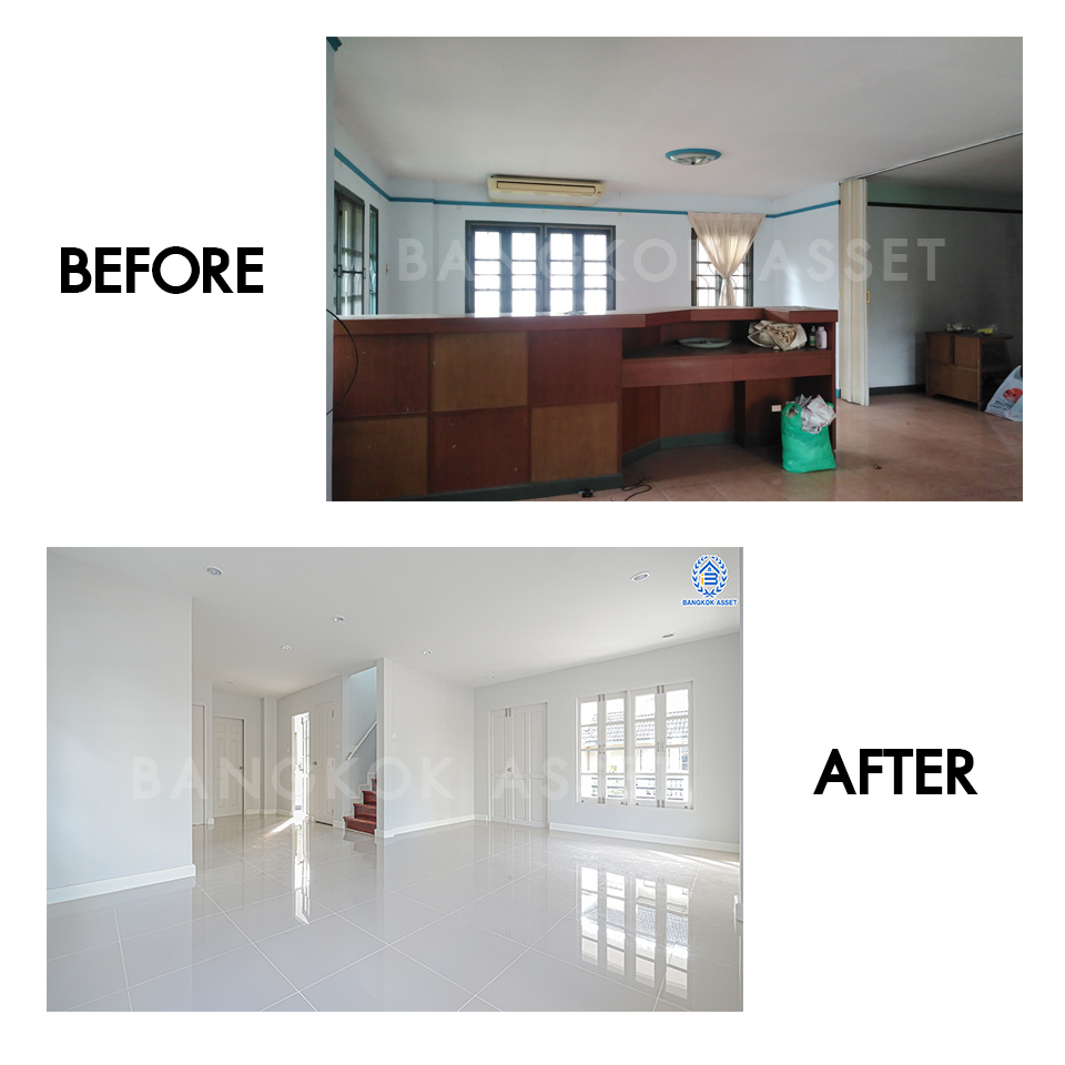 หากคุณคิดจะขายบ้าน แต่ไม่มีเวลา หรือไม่มีประสบการณ์ในการขายเลย ปรึกษาเราได้! ไม่ว่าจะเป็นการประเมินราคา แนะนำการตั้งราคาขายที่เหมาะสม โดยเฉพาะการรีโนเวทบ้านให้พร้อมขาย แม้บ้านจะมีสภาพไม่พร้อมแค่ไหนก็ตาม เราการันตีได้เลยว่าบ้านของคุณจะสวยใหม่พร้อมอยู่เช่นเดียวกับช่วยให้บ้านของคุณขายง่าย ขายไวแน่นอน ชมภาพก่อนและหลังรีโนเวทครั้งนี้ได้เลย