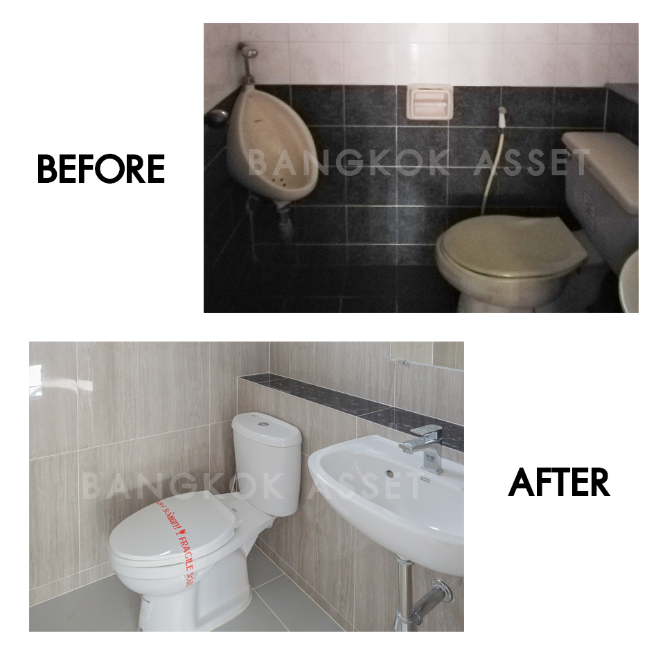 ห้องน้ำเรียกว่าทำให้ใหม่ทั้งหมด ไม่ว่าจะเปลี่ยนสุขภัณฑ์ใหม่ เปลี่ยนกระเบื้องผนังใหม่ และเปลี่ยนกระเบื้องพื้นแบบกันลื่นเพื่อความปลอดภัย นอกจากวัสดุที่เปลี่ยนให้ใหม่หมดแล้ว เรื่องของระบบระบายน้ำ และระบบไฟฟ้าเราก็ดูแลให้เช่นกันครับ
