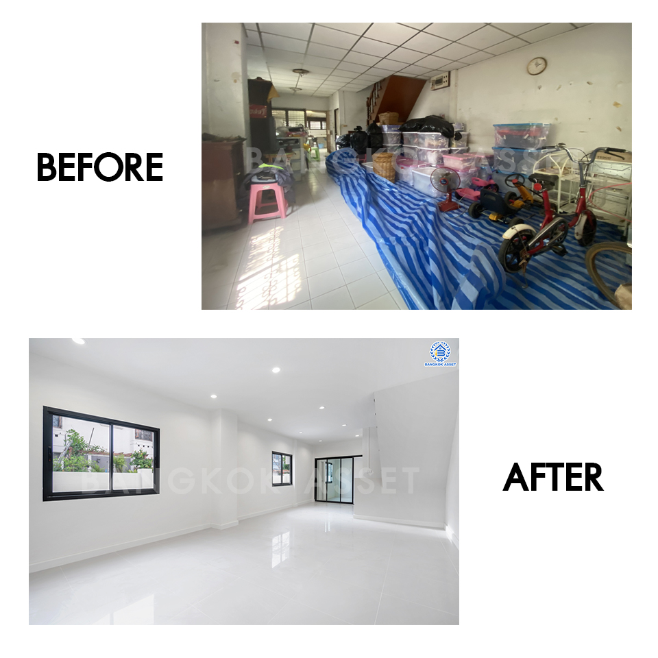 จากบ้านที่สภาพเก่ามากๆ แต่ยังไม่เกินเยียวยา เพียงฝากขายกับบางกอก แอสเซทฯ เราจัดการให้ทั้งหมด เปลี่ยนวัสดุใหม่เกือบทั้งหมด ทาสีใหม่ทั้งหลัง
