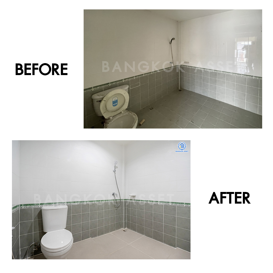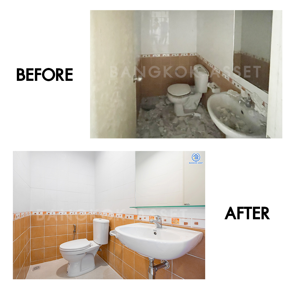 ห้องน้ำเรียกว่าทำให้ใหม่ทั้งหมด ไม่ว่าจะเปลี่ยนสุขภัณฑ์ใหม่ เปลี่ยนกระเบื้องผนังใหม่ และเปลี่ยนกระเบื้องพื้นแบบกันลื่นเพื่อความปลอดภัย นอกจากวัสดุที่เปลี่ยนให้ใหม่หมดแล้ว เรื่องของระบบระบายน้ำ และระบบไฟฟ้าเราก็ดูแลให้เช่นกันครับ