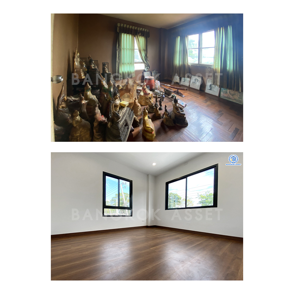 ห้องนอนทุกห้องเราเปลี่ยนประตู หน้าต่างให้ ส่วนฝ้าเพดานเราก็เปลี่ยนให้ใหม่ พร้อมติดไฟดาวน์ไลท์ให้เช่นกัน และเปลี่ยนพื้นเป็นลามิเนตให้ใหม่ทั้งหมด เพราะดูแลรักษาความสะอาดง่าย ทนต่อน้ำยาทำความสะอาดต่างๆ และทนต่อรอยขีดข่วนได้ดี
