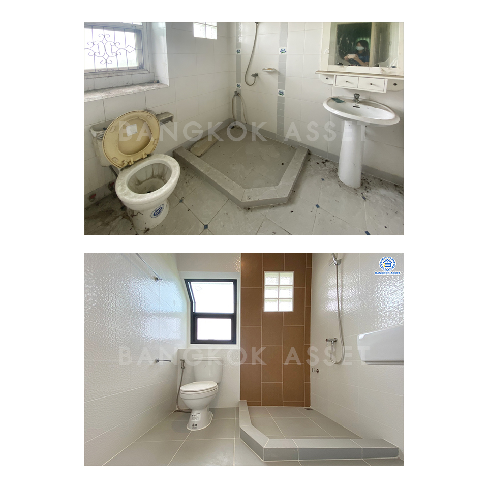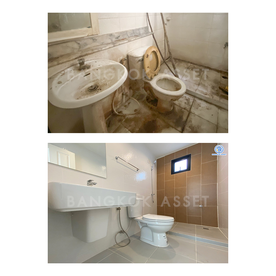 ห้องน้ำเรียกว่าทำให้ใหม่ทั้งหมด ไม่ว่าจะเปลี่ยนสุขภัณฑ์ใหม่ เปลี่ยนกระเบื้องผนังใหม่ และเปลี่ยนกระเบื้องพื้นแบบกันลื่นเพื่อความปลอดภัย นอกจากวัสดุที่เปลี่ยนให้ใหม่หมดแล้ว เรื่องของระบบน้ำ ระบบระบายน้ำ และระบบไฟฟ้าเราก็ดูแลให้เช่นกัน