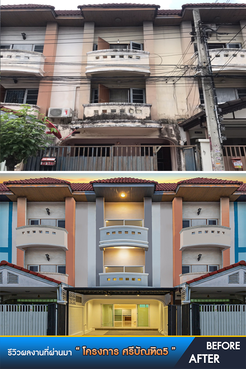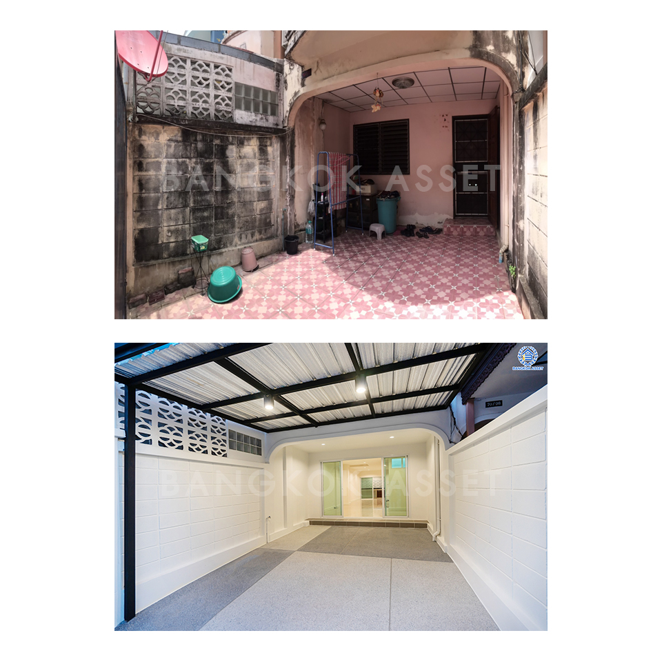 จากทาวน์โฮมหลังเดิมที่มีสภาพเก่าตามการใช้งาน ได้แปลงสภาพตกแต่งใหม่ทั้งหลัง โดยการทาสีใหม่เพิ่มความโดดเด่นในการเห็นครั้งแรก และตกแต่งด้วยวัสดุคุณภาพพรีเมี่ยมทำให้สวยงาม น่าอยู่อาศัยมากขึ้น ส่วนพื้นลานจอดรถเราใช้พื้นทรายล้าง ทำให้หน้าบ้านดูหรูหราสร้างเอกลักษณ์ได้ในแบบเฉพาะตัว รวมทั้งติดตั้งหลังคาลานจอดเพิ่มให้อีกด้วย