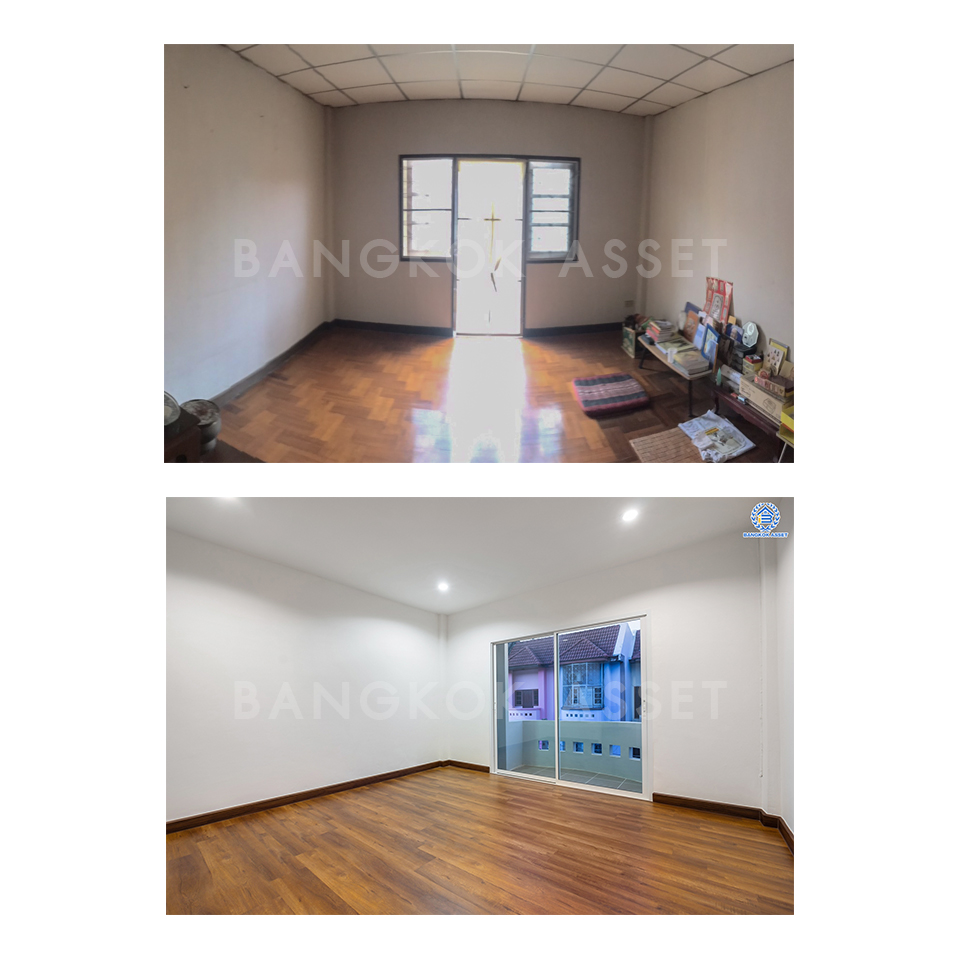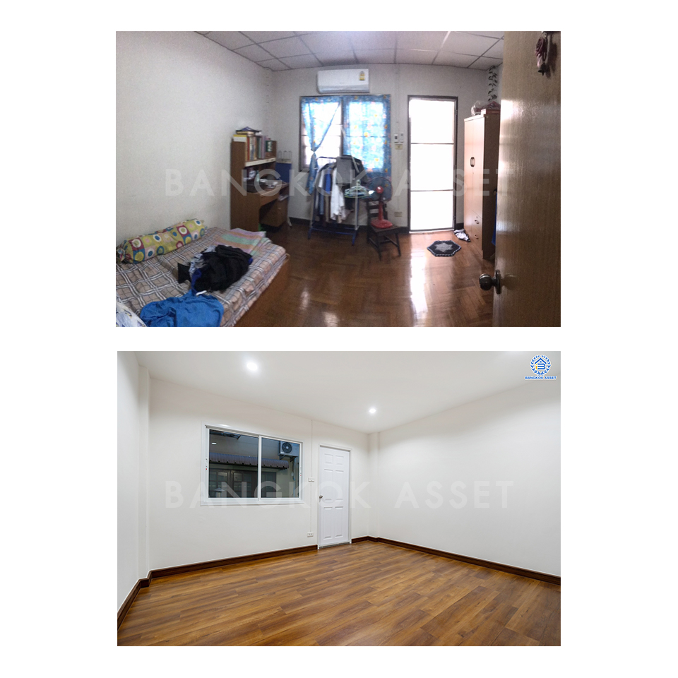 ห้องนอนทุกห้องเราเปลี่ยนเป็นพื้นลามิเนตให้ใหม่ทั้งหมด ให้ความสวยงามคงทนและนิยมใช้ในบ้านยุคใหม่ เปลี่ยนฝ้าเพดาน ประตู หน้าต่างทั้งหมด โดยคุมโทนสีภายในห้องเป็นโทนขาวสว่าง เพิ่มความรู้สึกผ่อนคลายให้กับผู้อยู่อาศัยอีกด้วย