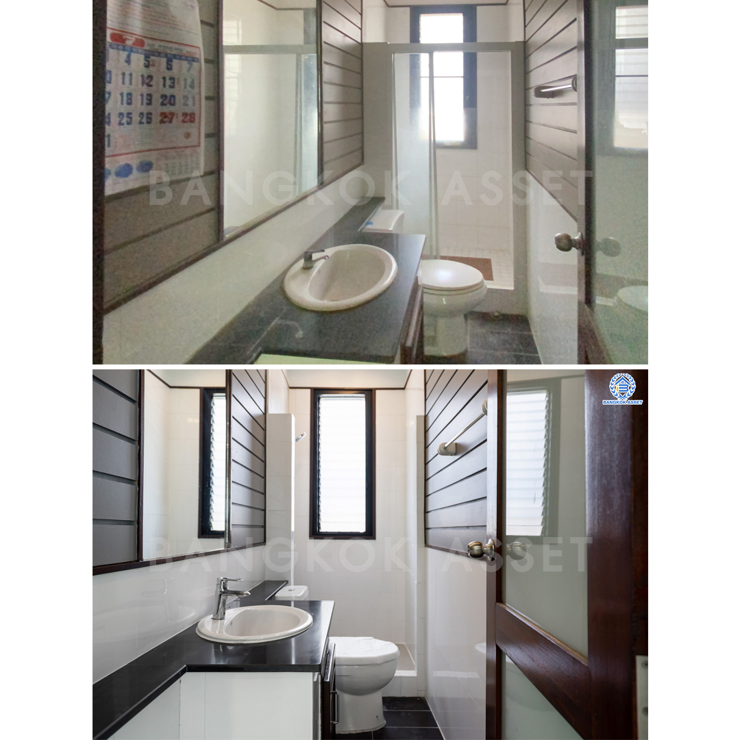 ห้องน้ำเปลี่ยนสุขภัณฑ์ใหม่ เปลี่ยนกระเบื้องผนังใหม่ และเปลี่ยนกระเบื้องพื้นแบบกันลื่นเพื่อความปลอดภัย นอกจากวัสดุที่เปลี่ยนให้ใหม่หมดแล้ว เรื่องของระบบน้ำ ระบบระบายน้ำ และระบบไฟฟ้าเราก็ดูแลให้เช่นกัน