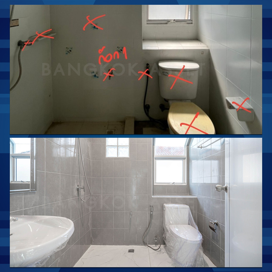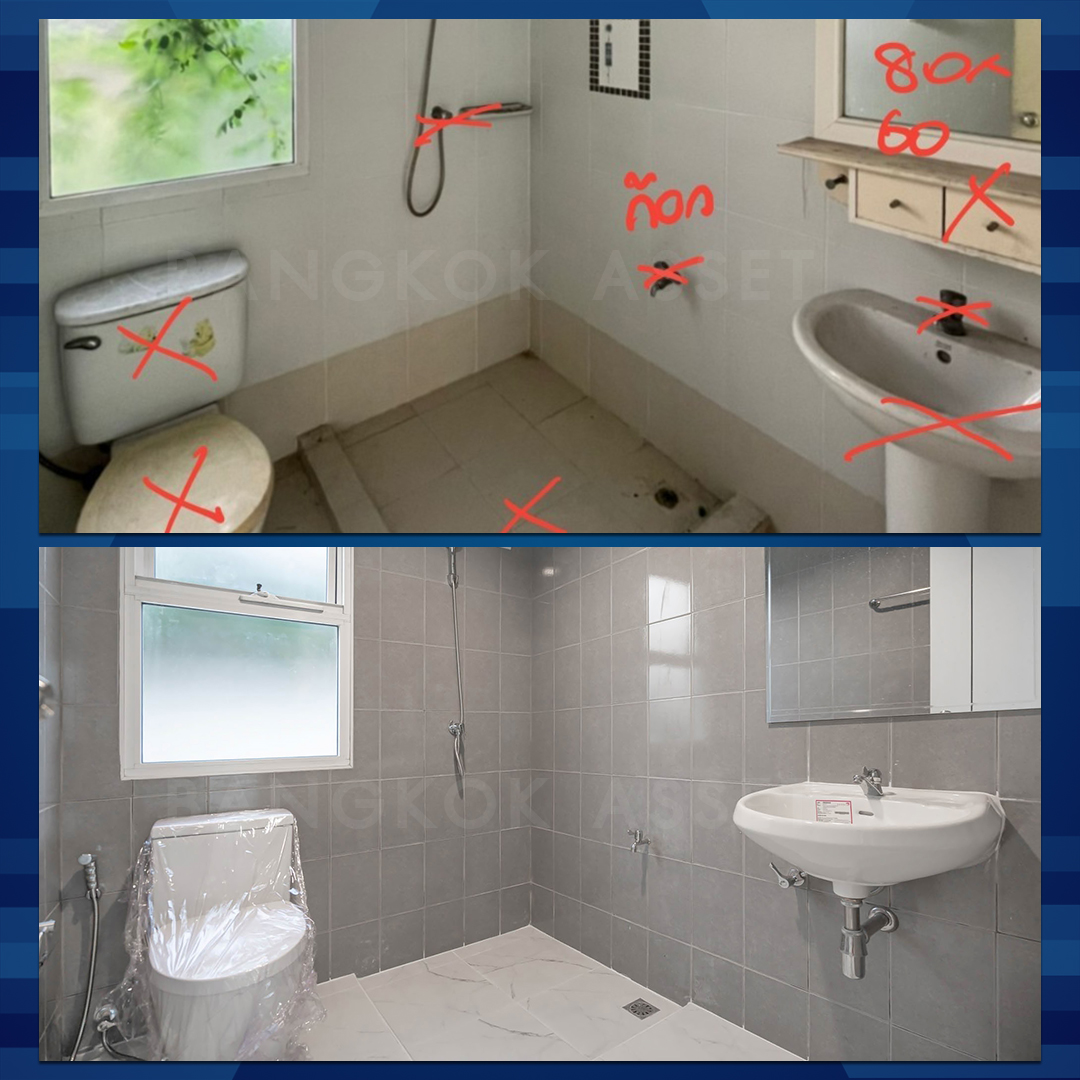 ห้องน้ำทำให้ใหม่ทั้งหมด ไม่ว่าจะเปลี่ยนสุขภัณฑ์ เปลี่ยนกระเบื้องผนัง และเปลี่ยนกระเบื้องพื้นแบบกันลื่น นอกจากวัสดุที่เปลี่ยนให้ใหม่หมดแล้ว เรื่องของระบบน้ำ ระบบไฟ เราก็ตรวจสอบซ่อมแซมให้ใช้งานได้อย่างปลอดภัยตามมาตรฐานบ้านใหม่ด้วยครับ