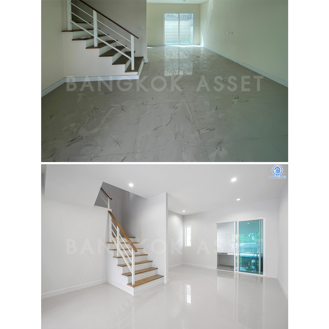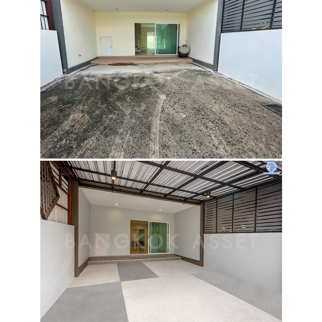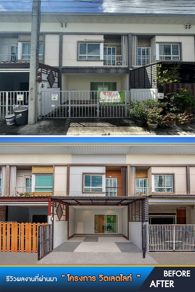 เราได้ปรับปรุงทาวน์โฮมหลังนี้ใหม่ทั้งหลัง ไม่ว่าจะเป็นการทาสีใหม่ให้ดูขาวสว่างยิ่งขึ้น ตั้งแต่รั้ว ลานจอดรถที่เทพื้นทรายล้าง พร้อมลวดลายสวยงาม ที่นิยมใช้กับบ้านหรู ส่วนหลังคาก็ทำแบบเมทัลชีทที่กันความร้อนได้ดีเพิ่มมาให้ใหม่ ช่วยให้คนซื้อตัดสินใจได้ง่ายขึ้น พร้อมยกกระเป๋าเข้าอยู่ทันที