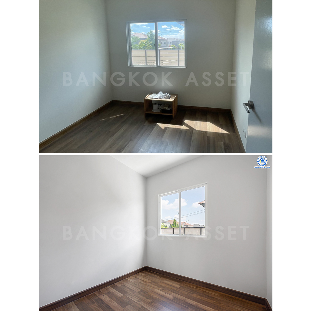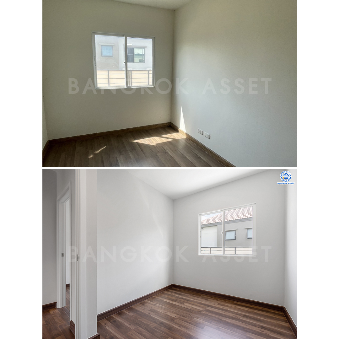 ห้องนอนทุกห้องเราเปลี่ยนเป็นพื้นไม้ลามิเนตลายเหมือนไม้จริง ดูอบอุ่น สบาย มีความหนาและแข็งแรงมากยิ่งขึ้น โดยคุมโทนสีภายในห้องเป็นโทนขาว พร้อมติดตั้งไฟดาวน์ไลท์ที่ทำให้บ้านสว่างน่าอยู่ และดูมีมิติมากขึ้น