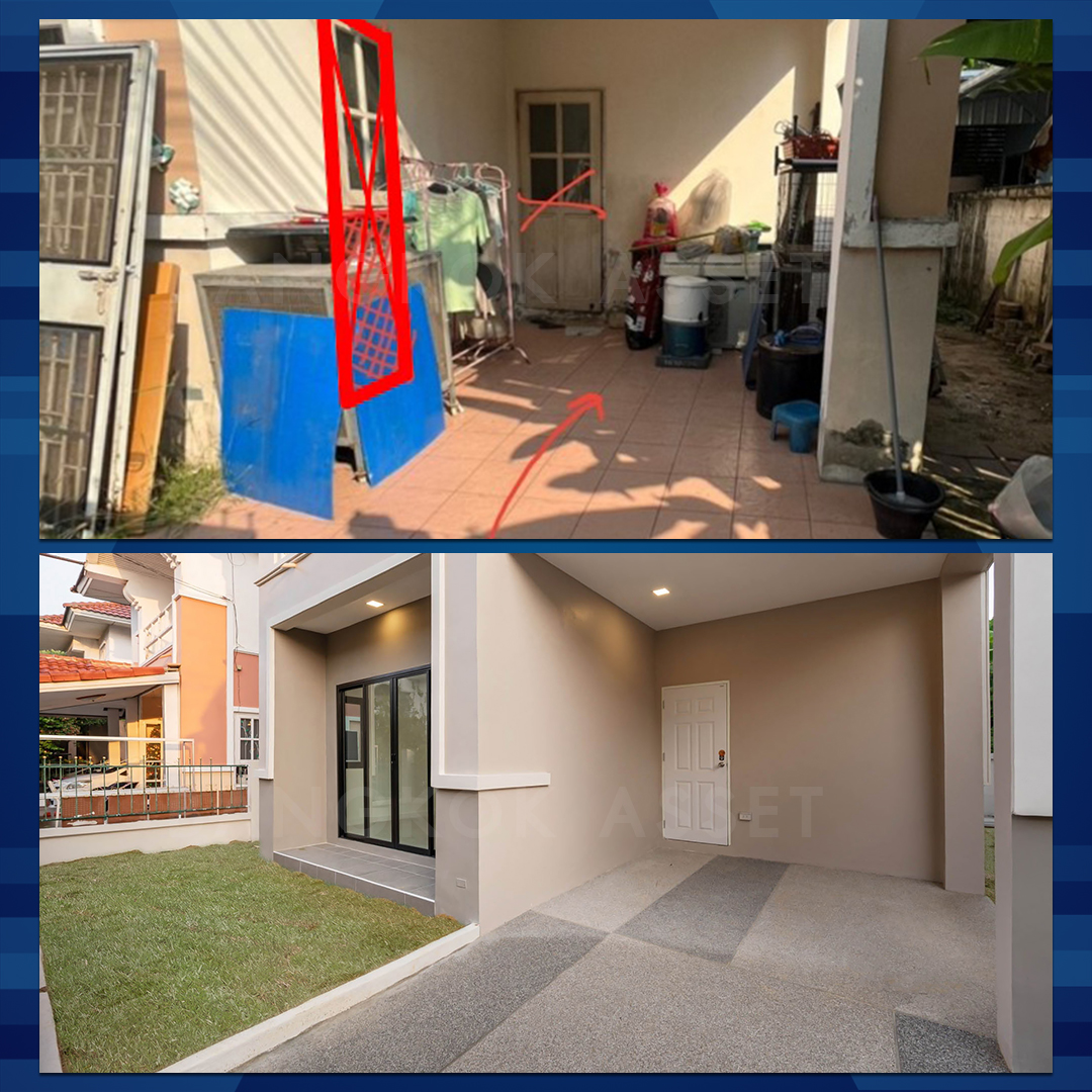 จากบ้านที่เริ่มเก่าโทรม เราเคลียร์พื้นที่ทั้งหมดให้โปร่งโล่ง เปลี่ยนรั้ว พื้น สี และวัสดุใหม่จนไม่ต่างกับบ้านหลังใหม่เลยครับ
