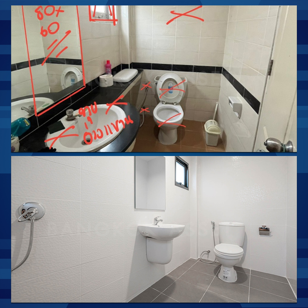 ห้องน้ำทำใหม่ทั้งหมด ไม่ว่าจะเปลี่ยนสุขภัณฑ์ใหม่ เปลี่ยนกระเบื้องผนัง เปลี่ยนอุปกรณ์ภายในห้องน้ำ และเปลี่ยนกระเบื้องพื้นแบบกันลื่น นอกจากนี้ยังดูแลตรวจสอบ ซ่อมแซม และเปลี่ยนระบบน้ำ ระบบไฟ สุขาภิบาล ให้พร้อมใช้งานได้อย่างสะดวกปลอดภัยอีกด้วย
