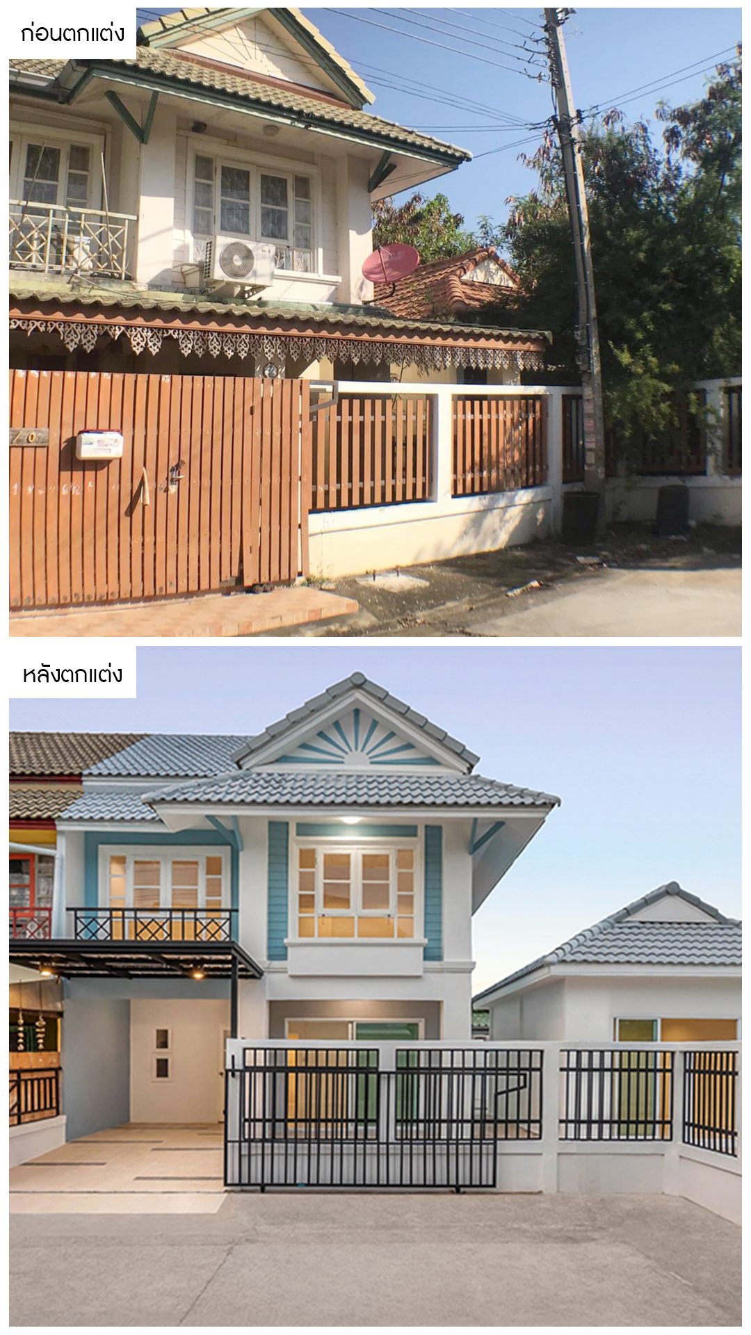 จากบ้านที่มีสภาพเก่าไม่มีความโดดเด่น เราได้ทำการเคลียร์พื้นที่บริเวณบ้าน เปลี่ยนรั้วให้ดูทันสมัยรับกับตัวบ้าน พร้อมเปลี่ยนสีใหม่ทั้งหลังเป็นโทนสีขาวสว่างตัดฟ้า ที่ให้ความสวยงาม โดดเด่นและน่าอยู่มากขึ้น