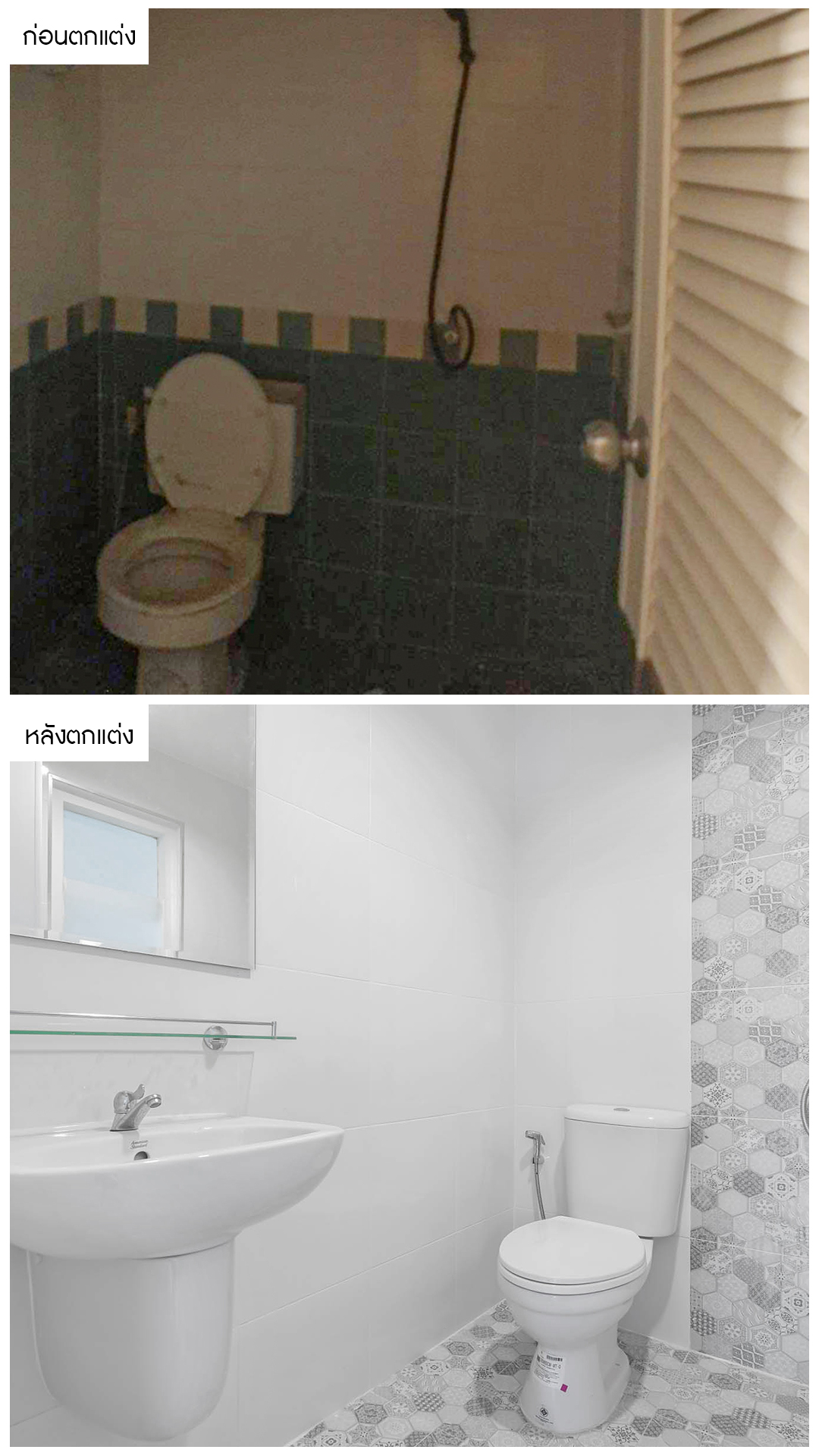 จากเดิมที่ห้องน้ำมีสภาพเก่า ไม่พร้อมใช้งาน เราได้ทำการตกแต่งใหม่ให้เป็นดีไซน์โมเดิร์น คัดวัสดุคุณภาพดี ทั้งพื้นกระเบื้องกันลื่น ,กระเบื้องผนัง อ่างล้างหน้า กระจก ฝักบัว และสุขภัณฑ์ในห้องน้ำ บอกได้เลยว่าครบครันทุกการใช้งานจริงๆครับ
