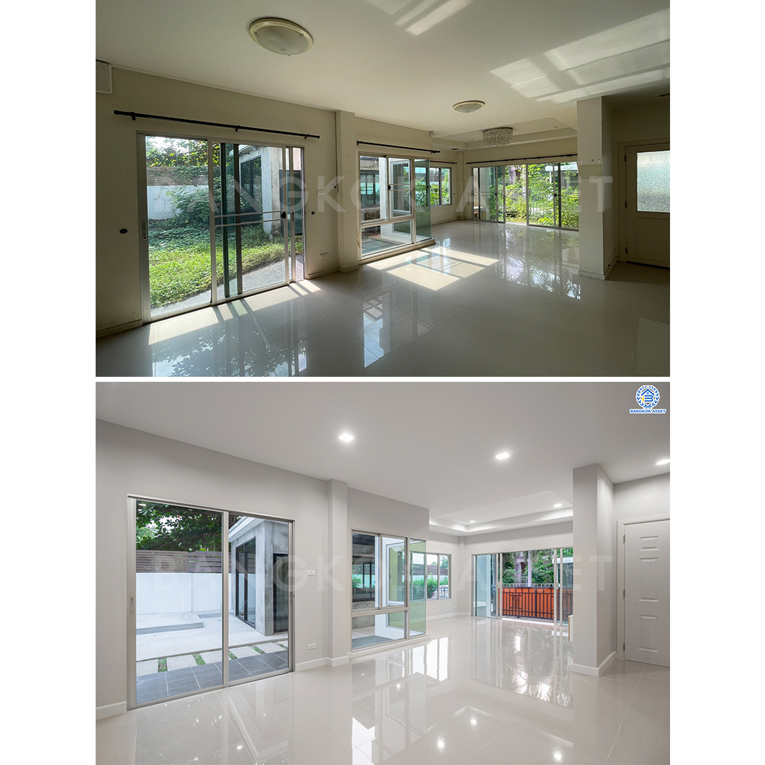 เพราะเราเข้าใจถึงปัญหาของผู้ขายที่ต้องการขายบ้านในสภาพที่สวยใหม่พร้อมอยู่อาศัย จากบ้านหลังเดิมที่มีสภาพเก่าตามการใช้งาน ได้แปลงสภาพตกแต่งใหม่ทั้งหลัง โดยการทาสีใหม่เพิ่มความโดดเด่นในการเห็นครั้งแรก รวมไปถึงรั้วและประตูหน้าบ้าน
