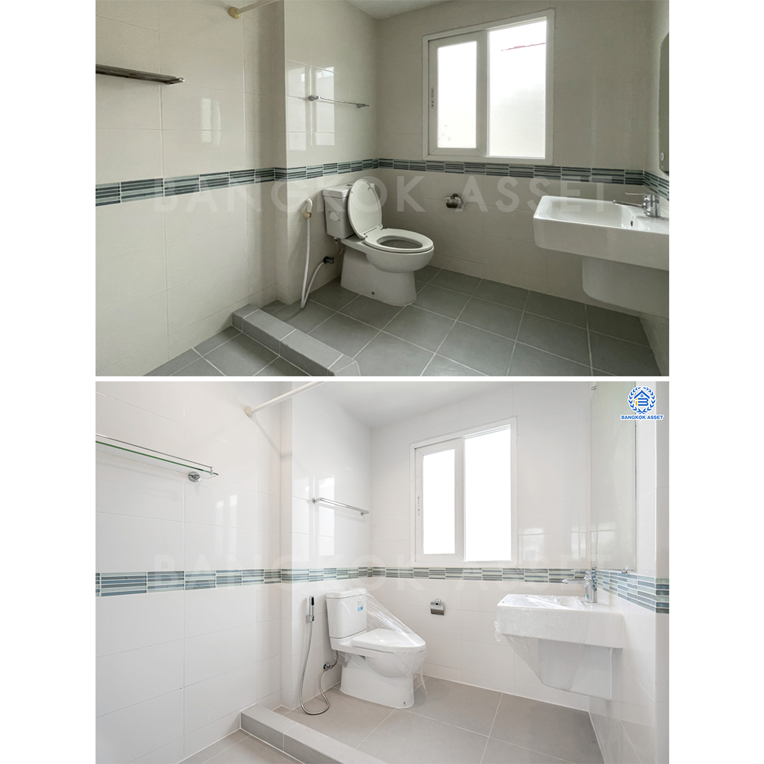 ห้องน้ำ เปลี่ยนสุขภัณฑ์ใหม่ให้ทุกห้อง นอกจากวัสดุที่เปลี่ยนให้ใหม่แล้ว เรื่องของระบบระบายน้ำ ระบบไฟฟ้าเราก็ดูแลให้เช่นกัน