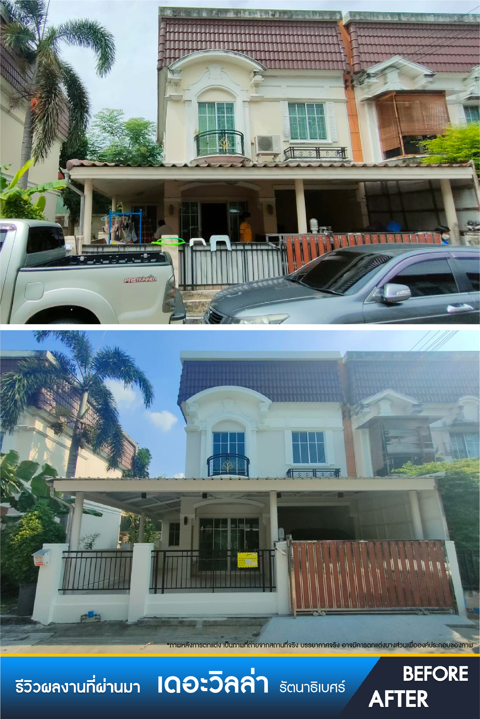 จากบ้านเก่าที่ผ่านการใช้งานมานาน เราได้แปลงสภาพใหม่ทั้งหลัง ไม่ว่าจะเป็นการทาสีใหม่ให้ดูขาวสว่างยิ่งขึ้น ไม่ใช่แค่ตัวบ้านเท่านั้น แต่รวมตั้งแต่รั้วไปจนถึงส่วนต่อเติมทั้งลานจอดรถและห้องครัวทั้งหมด