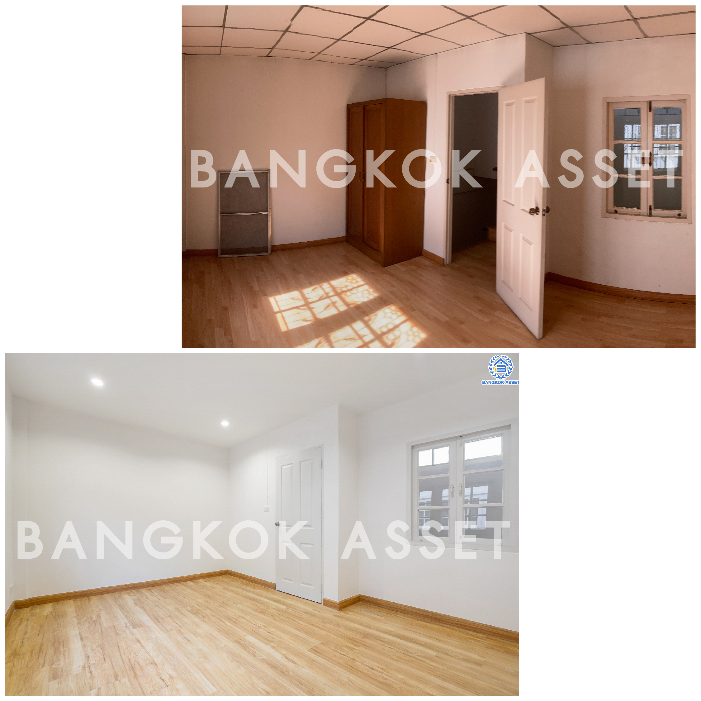 ห้องนอนทุกห้องเราเปลี่ยนเป็นพื้นไม้ลามิเนตลายเหมือนไม้จริง ดูอบอุ่น สบาย มีความหนาและแข็งแรงมากยิ่งขึ้น โดยคุมโทนสีภายในห้องเป็นโทนขาว เปลี่ยนฝ้าเพนดานใหม่ทั้งหมด พร้อมติดตั้งไฟดาวน์ไลท์ที่ทำให้บ้านดูมีมิติมากขึ้น