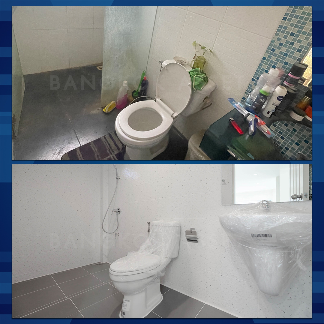 ห้องน้ำเปลี่ยนวัสดุใหม่ ไม่ว่าจะสุขภัณฑ์ อุปกรณ์ห้องน้ำ กระเบื้องพื้น-ผนัง รวมไปถึงตรวจสอบและแก้ไขระบบน้ำ ระบบไฟฟ้าให้พร้อมใช้งานได้อย่างสะดวกปลอดภัย