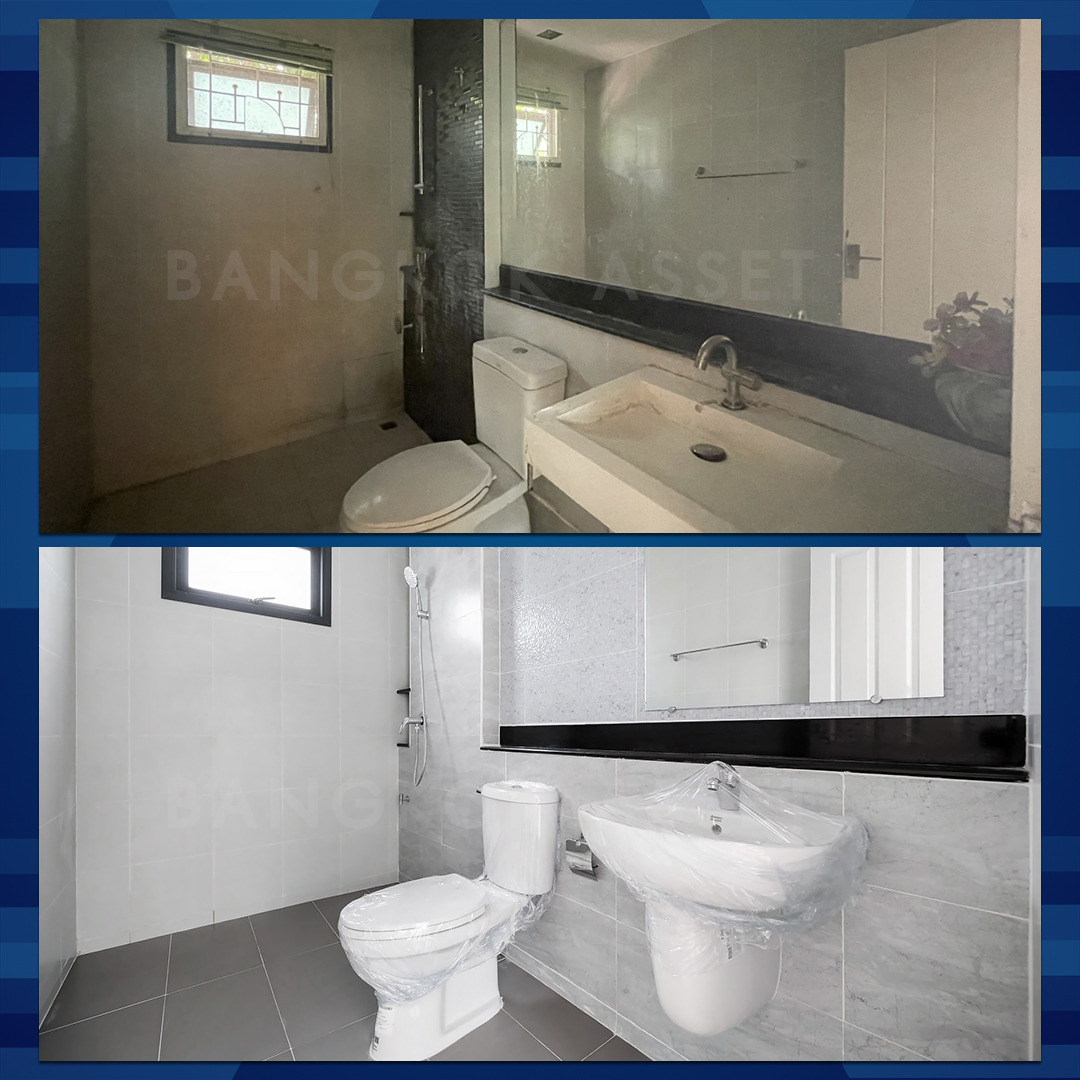 ห้องน้ำเราเปลี่ยนสุขภัณฑ์ใหม่ รวมทั้งกระเบื้องทุกส่วน พร้อมเปลี่ยนอ่างล้างมือ ส่วนพื้นเลือกใช้เป็นกระเบื้องกันลื่นเพื่อความปลอดภัย และเรื่องของระบบระบายน้ำ ระบบไฟฟ้าเราก็ตรวจสอบ ซ่อมแซม และเปลี่ยนใหม่ให้ใช้งานได้อย่างสะดวกปลอดภัย