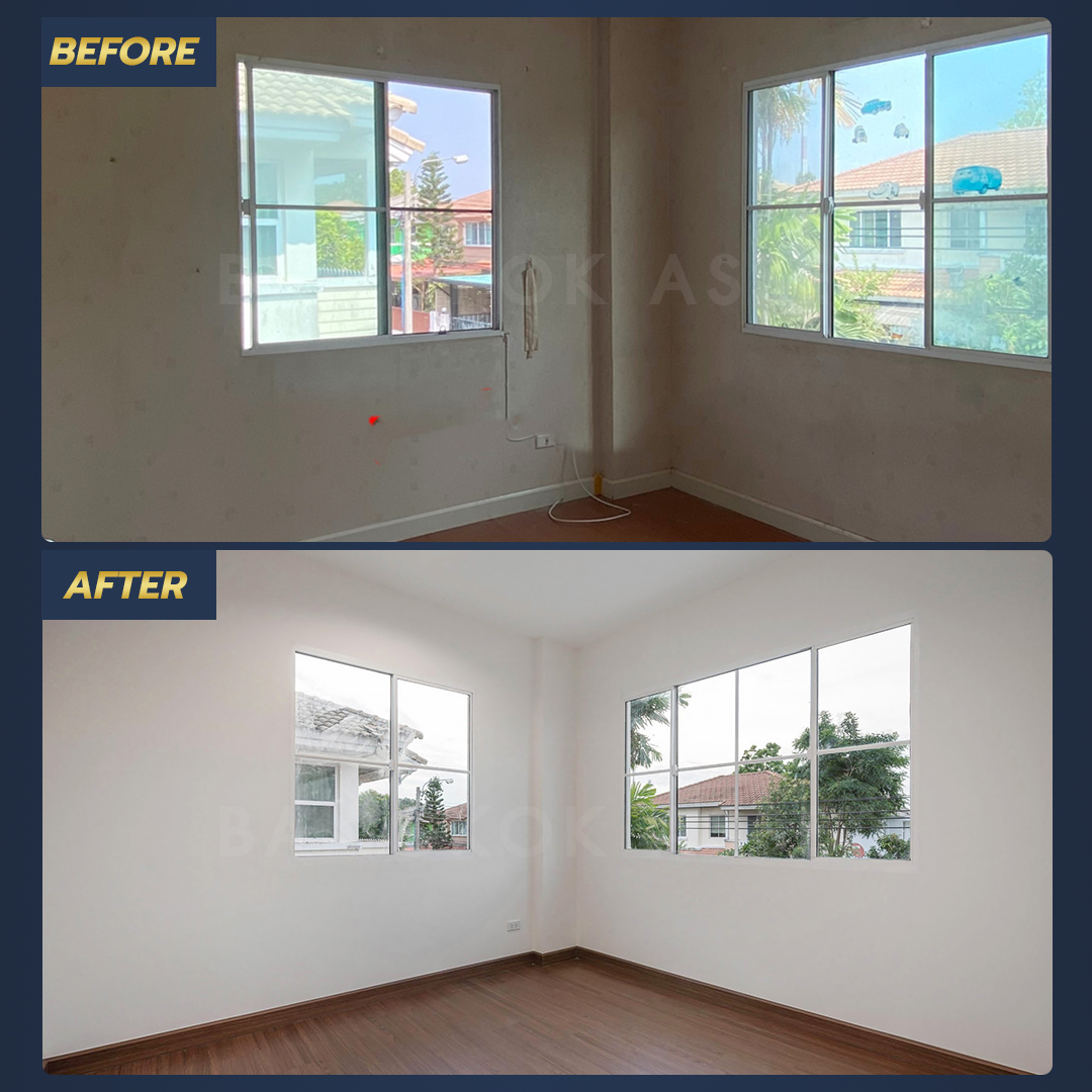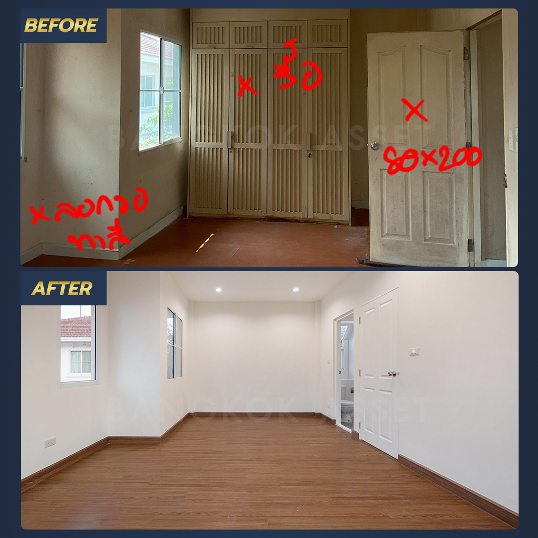 ห้องนอนทุกห้องเราเปลี่ยนเป็นพื้นไม้ลามิเนตลายเหมือนไม้จริงใหม่ทั้งหมดเพิ่มความอบอุ่น สบายเท้า พร้อมตรวจสอบ ซ่อมแซม ประตู หน้าต่างให้พร้อมใช้งานได้ตามมาตรฐาน