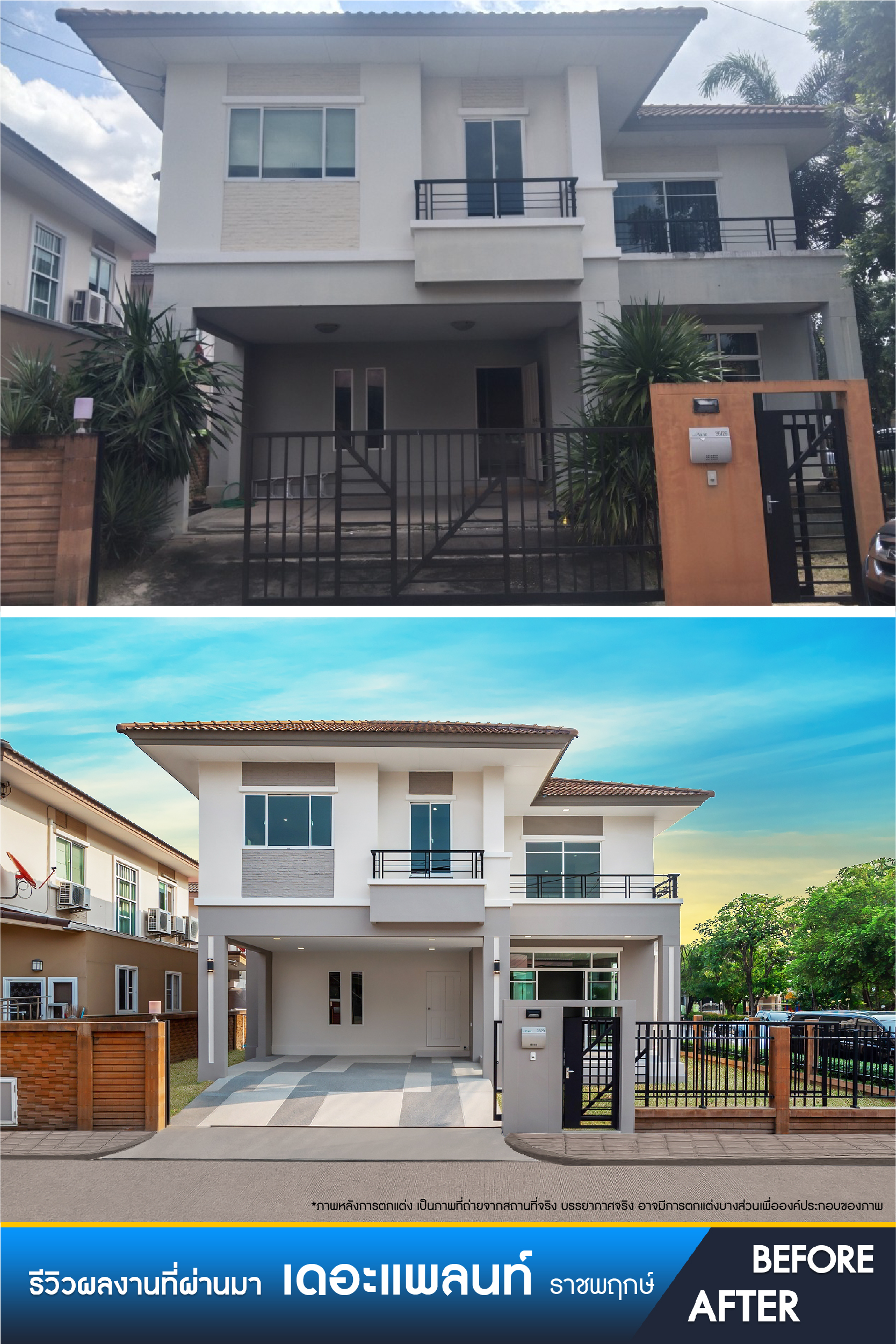จากบ้านที่ผ่านการใช้งาน เราได้แปลงสภาพตกแต่งใหม่ ไม่ว่าจะเป็นการทาสีใหม่ให้ดูขาวสว่างยิ่งขึ้น ในส่วนของหน้าบ้านและลานจอดรถ เราเคลียร์พื้นที่ทั้งหมดให้ดูโปร่งโล่งน่าอยู่อาศัยเปลี่ยนพื้นลานจอดรถเป็นพื้นทรายล้าง ทำให้หน้าบ้านดู หรูหรา สร้างเอกลักษณ์ได้ในแบบเฉพาะตัว และได้ความแข็งแรง ทนทาน กันลื่นได้เป็นอย่างดี