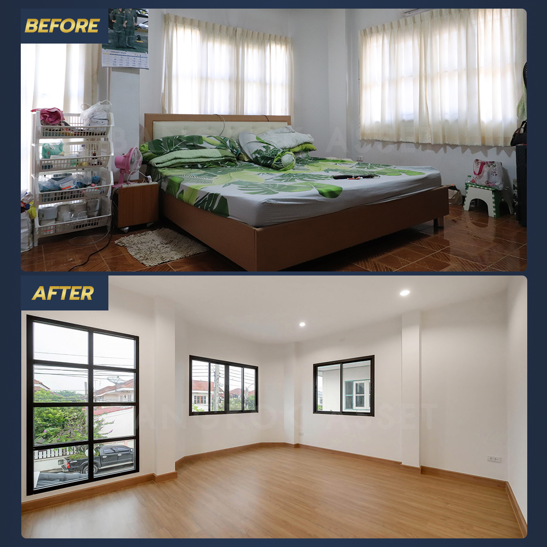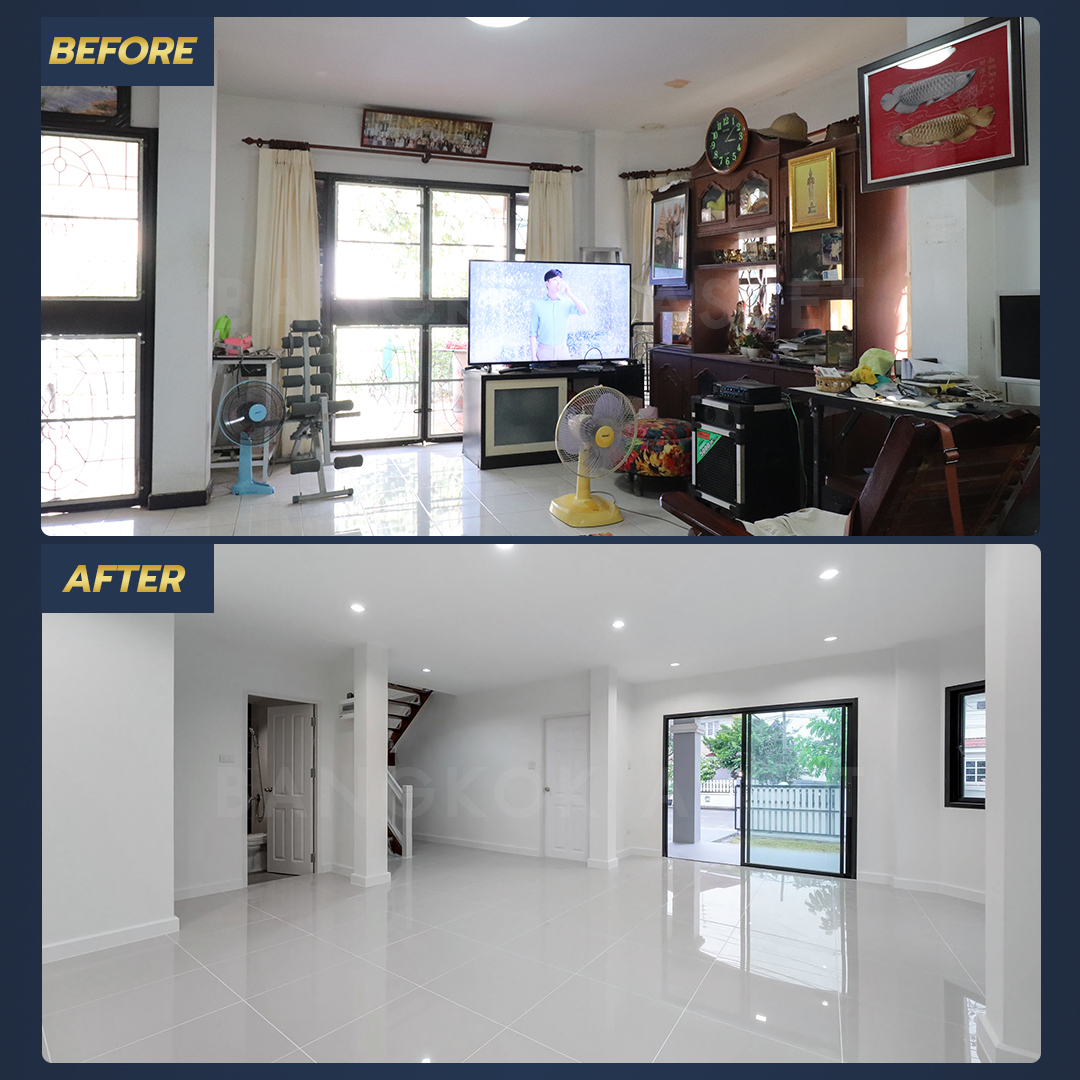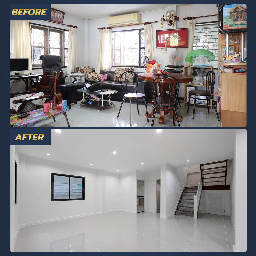 จากบ้านที่เริ่มเก่าโทรม เราเคลียร์พื้นที่ทั้งหมดให้โปร่งโล่ง เปลี่ยนรั้ว พื้น สี และวัสดุใหม่หลายรายการ ทั้งหมดนี้จะช่วยให้บ้านของคุณโดดเด่นและน่าอยู่ จนขายได้ไวยิ่งขึ้นจริงๆ
