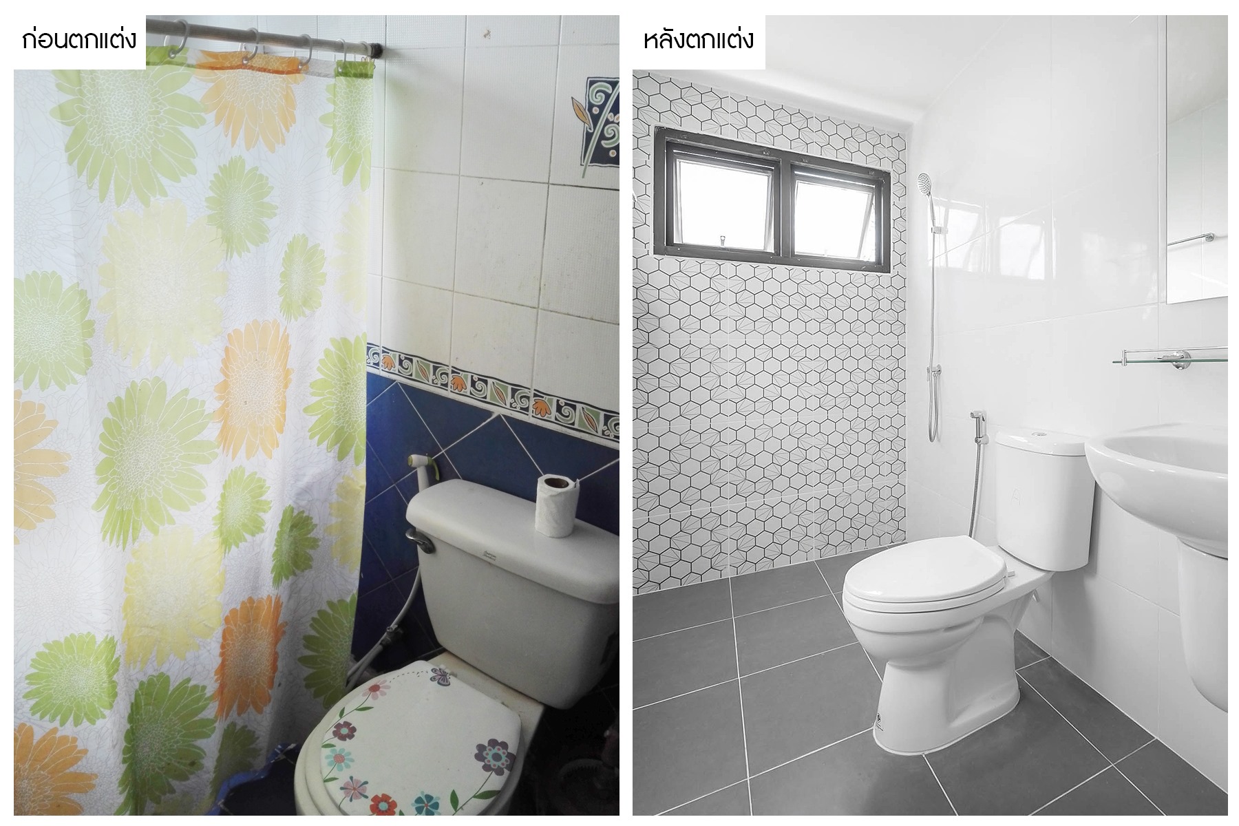 จากเดิมที่ห้องน้ำมีสภาพเก่า ไม่เหมาะแก่การใช้งาน เราได้ทำการตกแต่งใหม่ให้เป็นดีไซน์โมเดิร์น ด้วยวัสดุคุณภาพดี ทั้งพื้นกระเบื้องกันลื่นเพื่อความปลอดภัยของผู้อยู่อาศัย ,กระเบื้องผนัง และสุขภัณฑ์ในห้องน้ำ บอกได้เลยว่าครบครันทุกการใช้งานจริงๆครับ
