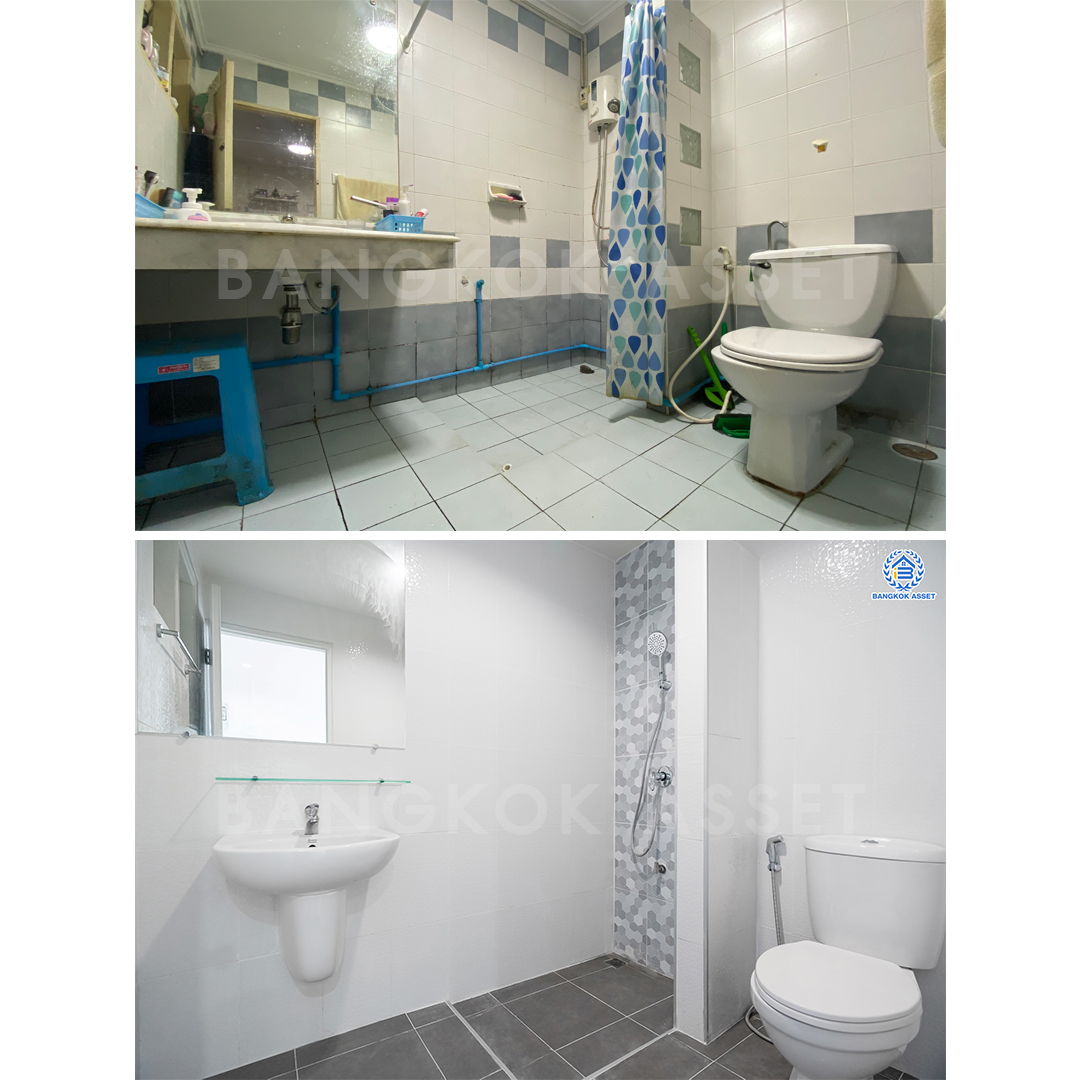 ห้องน้ำ เราทำให้ใหม่ทั้งหมดเช่นกัน เปลี่ยนสุขภัณฑ์ใหม่ อ่างล้างมือ กระจก กระเบื้องผนัง กระเบื้องพื้นแบบกันลื่นครบทุกอย่างจริง ๆ นอกจากวัสดุที่เปลี่ยนให้ใหม่หมดแล้ว เรื่องระบบน้ำ ระบบไฟฟ้าเราก็ดูแลให้เช่นกันครับ