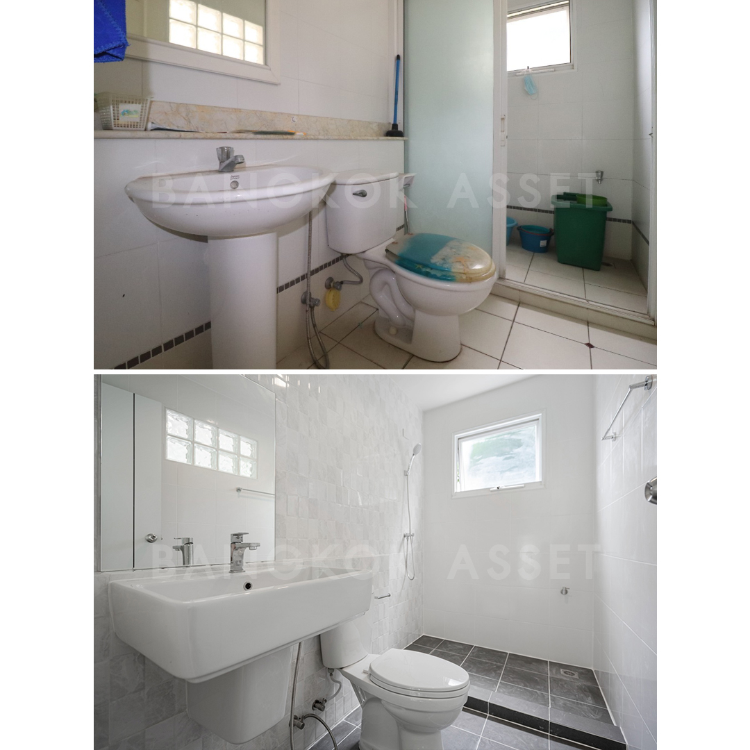 ห้องน้ำเรียกว่าทำให้ใหม่ทั้งหมด ไม่ว่าจะเปลี่ยนสุขภัณฑ์ใหม่ เปลี่ยนกระเบื้องผนังใหม่ และเปลี่ยนกระเบื้องพื้นแบบกันลื่นเพื่อความปลอดภัย นอกจากวัสดุที่เปลี่ยนให้ใหม่หมดแล้ว เรื่องของระบบระบายน้ำ ระบบไฟฟ้าเราก็ทดสอบดูแลให้พร้อมใช้งานได้อย่างปลอดภัยครับ