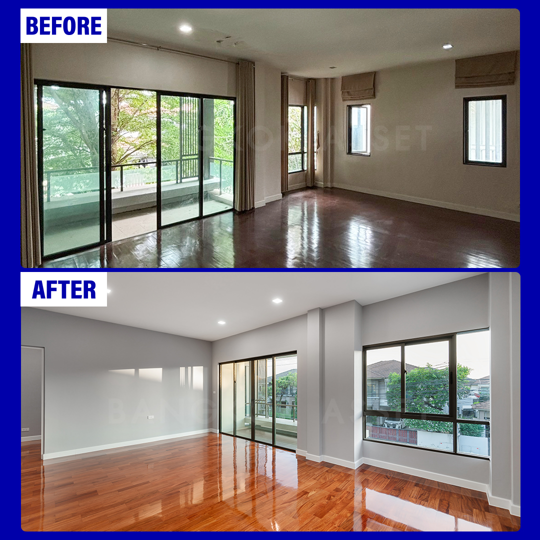 งานรีโนเวทบ้านทั้งหลัง ตั้งแต่ปรับปรุงโครงสร้าง ทาสีใหม่ทั้งภายในและภายนอก