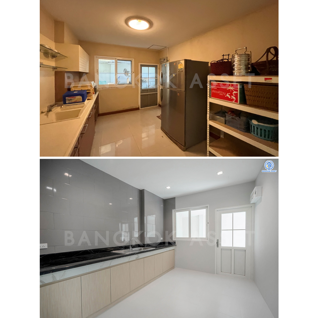 ห้องครัว เราเปลี่ยนกระเบื้องใหม่ให้ทั้งพื้นและผนัง รวมถึงเคาน์เตอร์ครัว และเปลี่ยนบานซิงค์ใหม่หมด ใช้งานได้อีกยาว ๆ ซึ่งส่วนไหนไม่สวยหรือชำรุดเราเปลี่ยนให้ใหม่ทั้งหมดครับ