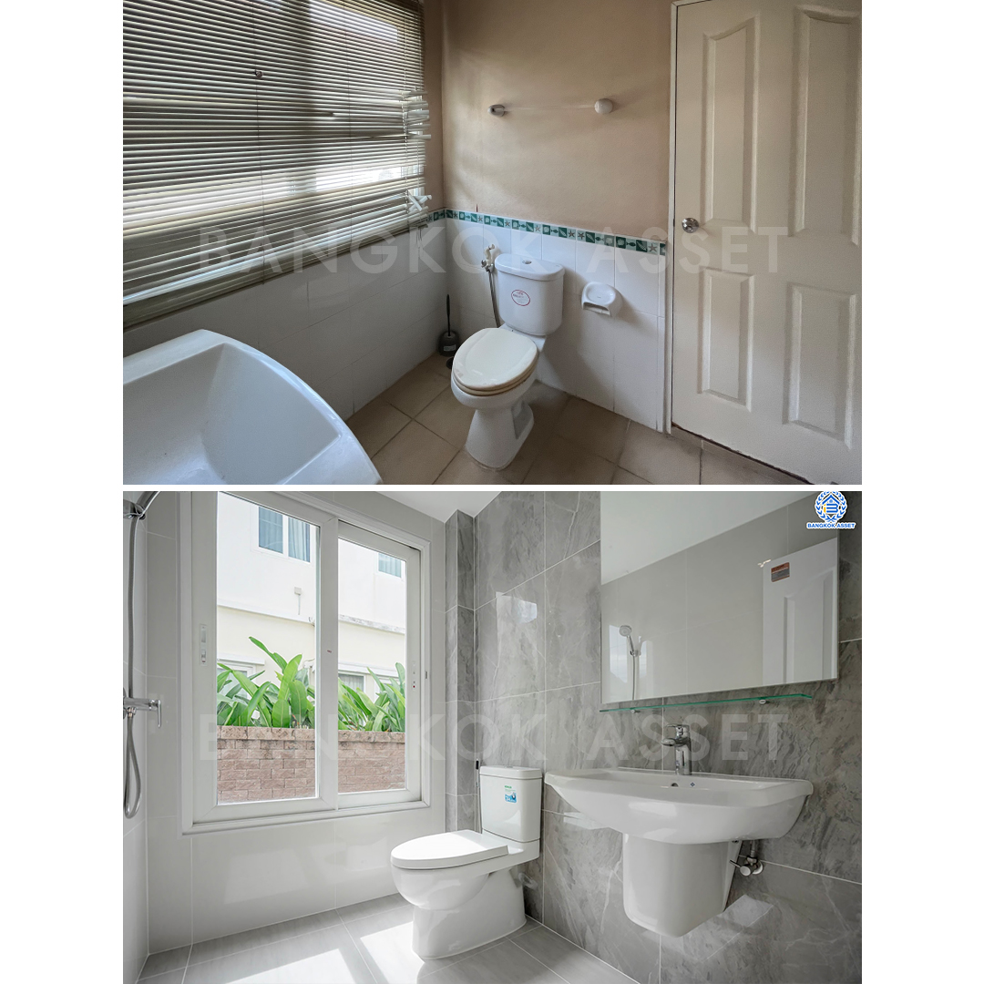 ห้องน้ำเราเปลี่ยนสุขภัณฑ์ เปลี่ยนกระเบื้องพื้นแบบกันลื่นเพื่อความปลอดภัย ส่วนกระเบื้องผนังเปลี่ยนเป็นลายหินอ่อนสวยหรูเหมือนกับโรงแรมราคาแพง นอกจากวัสดุที่เปลี่ยนให้ใหม่หมดแล้ว เรื่องของระบบระบายน้ำ และระบบไฟฟ้าเราก็ดูแล ทดสอบให้พร้อมใช้งานได้อย่างดี