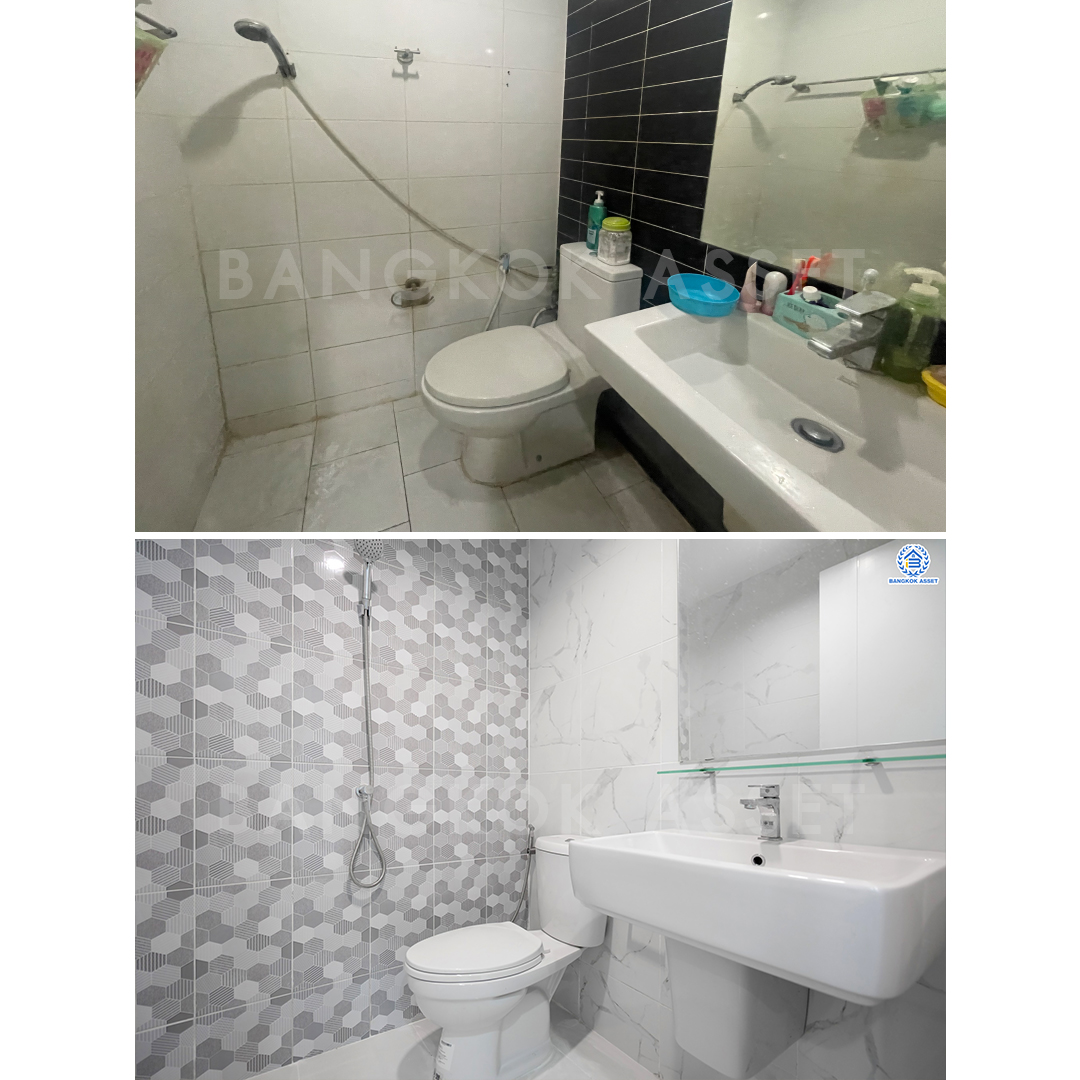 ห้องน้ำเราเปลี่ยนสุขภัณฑ์ เปลี่ยนกระเบื้องพื้น กระเบื้องผนัง และอุปกรณ์ใหม่ทั้งหมด นอกจากนี้เรายังตรวจสอบดูแลระบบระบายน้ำ ระบบไฟฟ้าให้พร้อมใช้งานได้อย่างดีด้วย