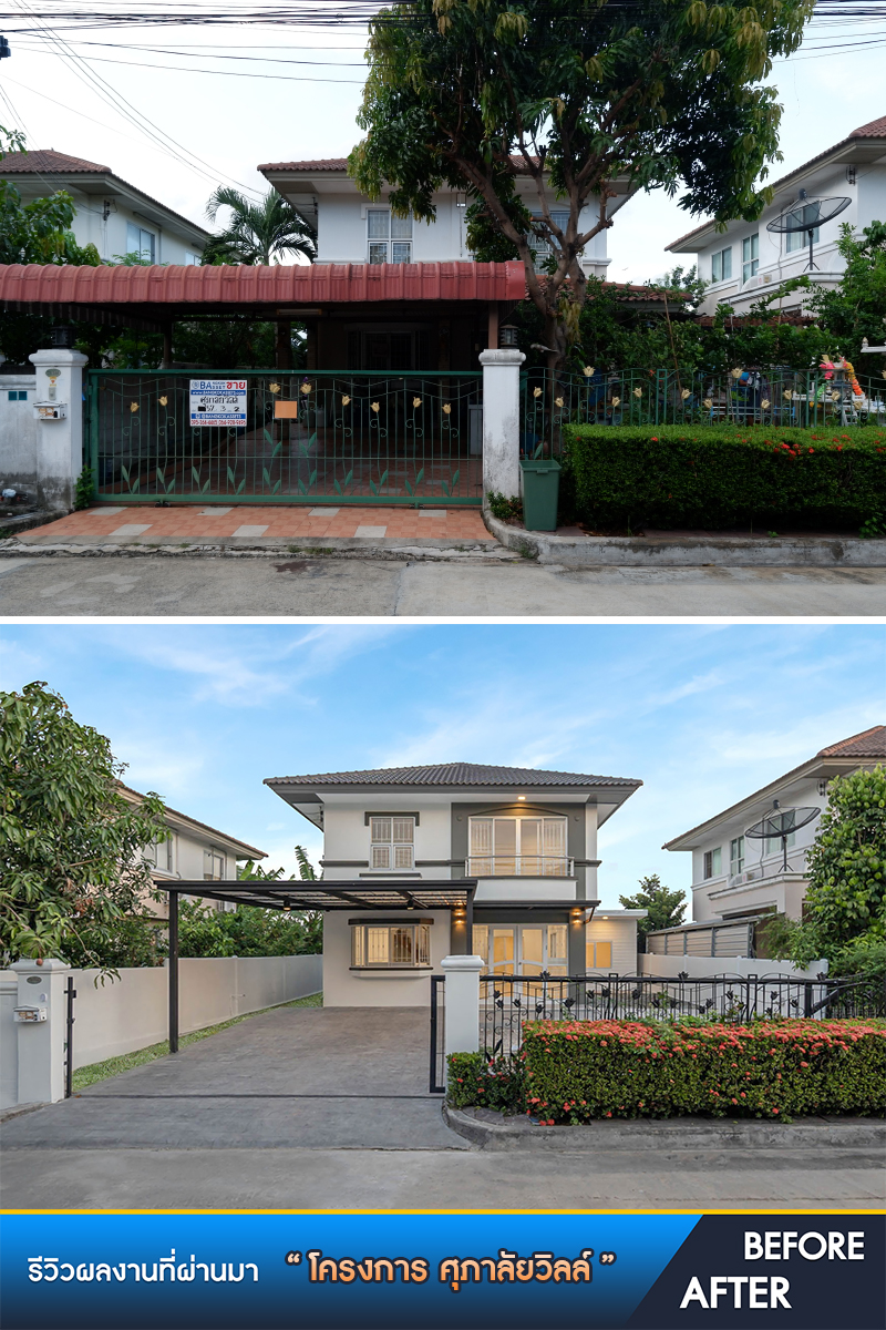 จากบ้านสภาพเริ่มเก่า ดูทึบจนอึดอัด เราเปลี่ยนโฉมใหม่ทั้งหลังรวมถึงหน้าบ้านด้วย เปลี่ยนสีใหม่สไตล์โมเดิร์นดูสวยทันสมัย เราปรับพื้นที่ให้ดูโปร่งโล่งยิ่งขึ้น