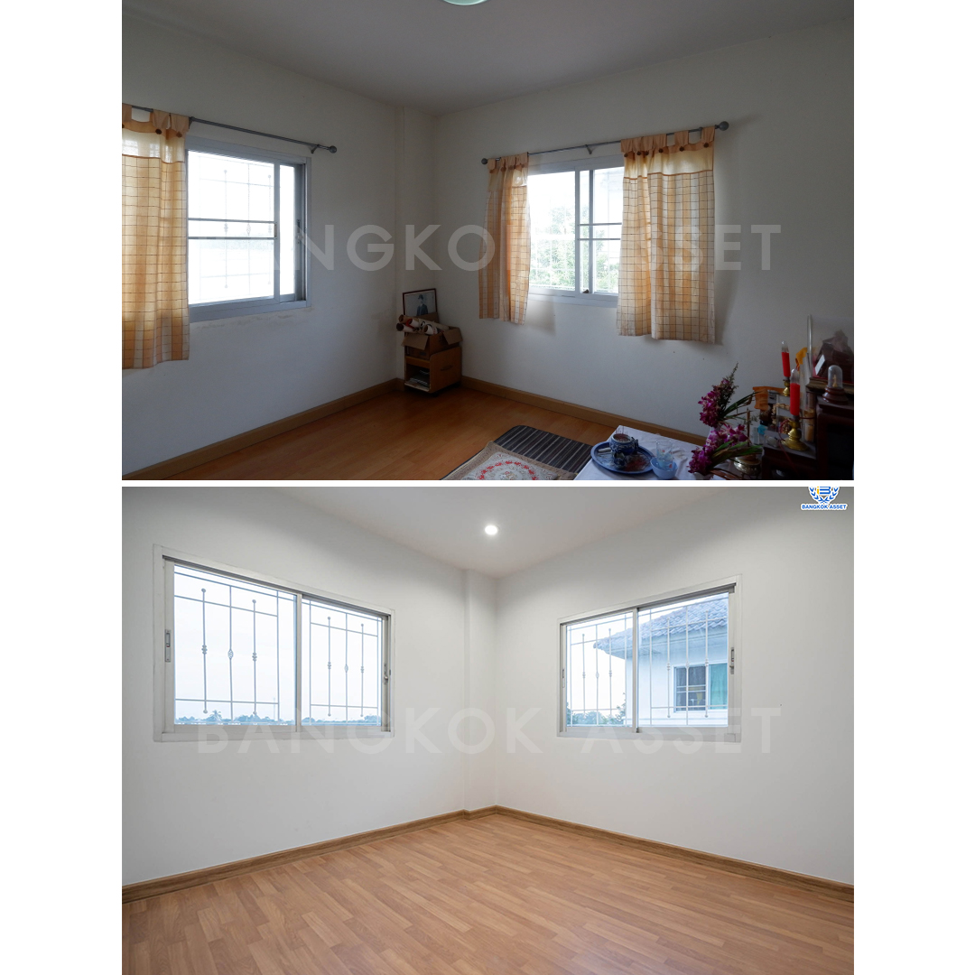 ห้องนอนทุกห้องเราเปลี่ยนเป็นพื้นไม้ลามิเนตใหม่ทั้งหมด เป็นลายเหมือนไม้จริง ดูอบอุ่น สบาย มีความหนาและแข็งแรงมากยิ่งขึ้น พร้อมติดไฟดาวน์ไลท์ให้ทั้งบ้านเช่นกัน นอกจากวัสดุที่เปลี่ยนให้ใหม่แล้ว เรายังตรวจสอบดูแลไปถึงระบบน้ำ ระบบไฟฟ้าให้ทั้งหลังด้วยครับ
