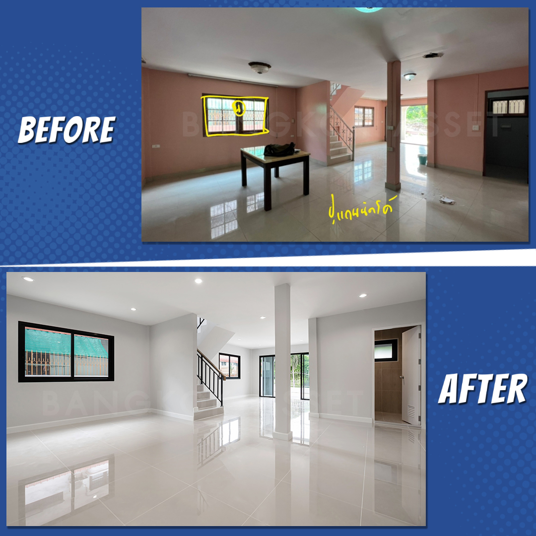 ไม่ว่าจะบ้านของคุณจะอยู่ในสภาพไหนก็มาฝากขายกับเราได้ทั้งนั้น ถ้าคิดว่ายังขายไวไม่ทันใจ เรามีตัวช่วย...ด้วยบริการรีโนเวทบ้านฟรีก่อนขายของเราที่มีทีมงานวิศวกร และสถาปนิกมืออาชีพช่วยดูแล รับรองว่าบ้านของคุณสวยใหม่น่าอยู่จนขายง่าย ขายไว เหมือนบ้านหลังนี้แน่นอน เชิญชมอีกผลงานของเราได้เลยครับ