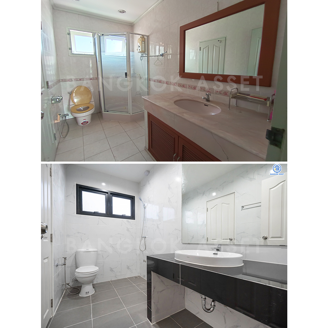ห้องน้ำเปลี่ยนสุขภัณฑ์ใหม่ เปลี่ยนกระเบื้องกำแพงลายหินอ่อนเพิ่มความหรูทันสมัยมากขึ้น เปลี่ยนกระเบื้องพื้นแบบกันลื่นเพื่อความปลอดภัย พร้อมเปลี่ยนอุปกรณ์ห้องน้ำทั้งหมด ส่วนเรื่องระบบระบายน้ำ ระบบไฟฟ้าเราก็ดูแลให้พร้อมใช้งานได้ 100% เช่นกันครับ