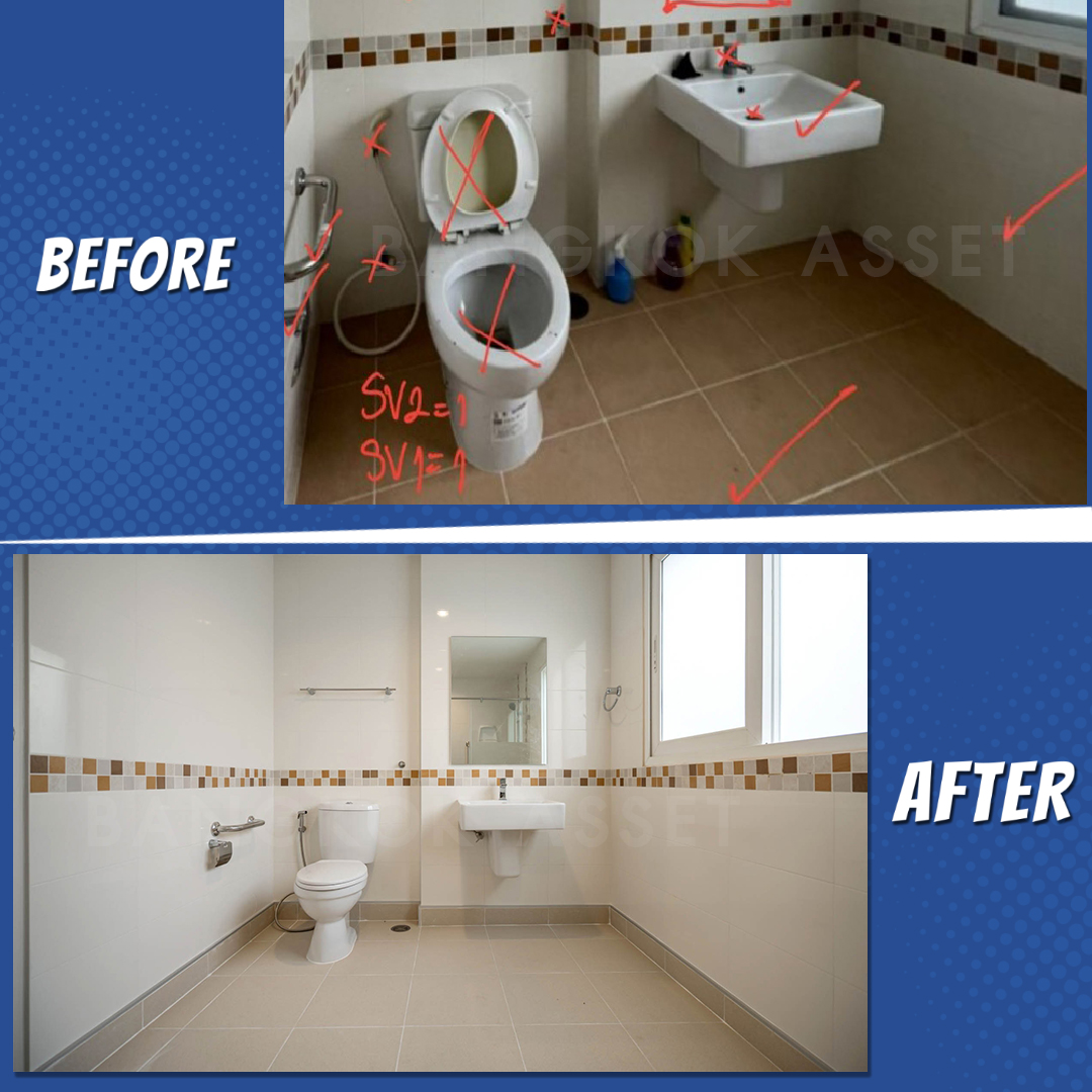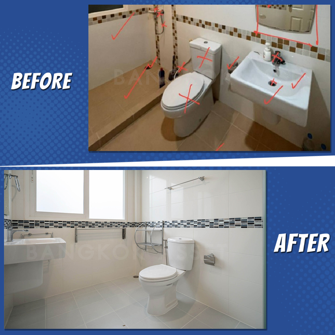 ห้องน้ำเราเปลี่ยนสุขภัณฑ์ กระเบื้องพื้นแบบกันลื่น รวมถึงอุปกรณ์ห้องน้ำใหม่ทั้งหมด และยังตรวจสอบดูแลระบบระบายน้ำ และระบบไฟฟ้าให้ใช้งานได้อย่างดีครับ