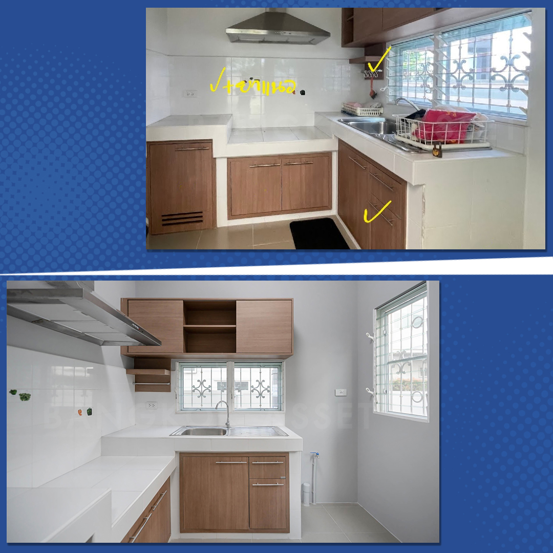 ห้องครัว ด้วยสภาพที่ยังดี เราซ่อมแซมเก็บงานให้จนกลับมาสวยใหม่เหมือนเดิม