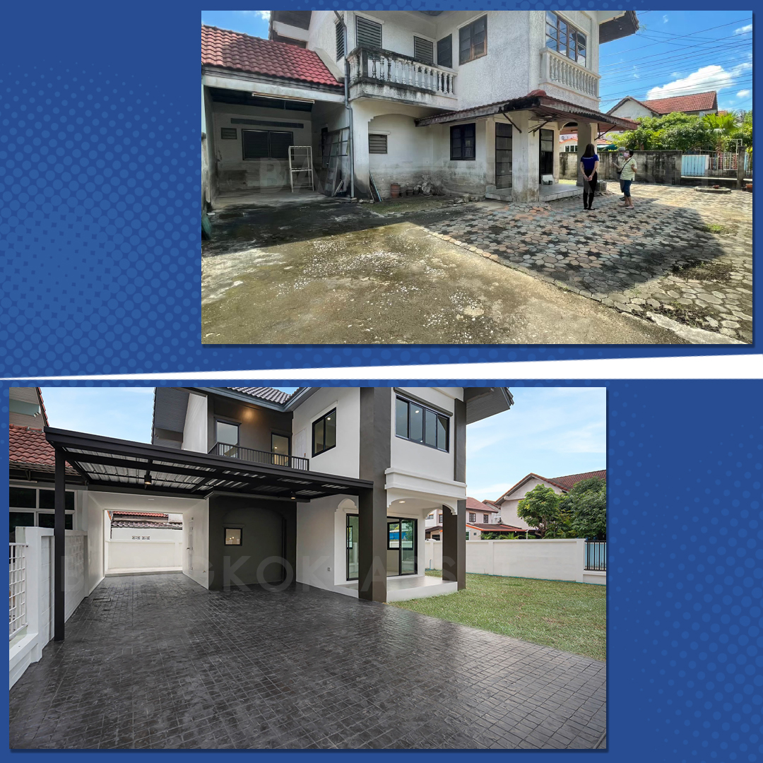 เจอปัญหาขายบ้านยากเพราะสภาพเก่าโทรมไม่น่าอยู่ แต่ไม่ใช่ปัญหาสำหรับบางกอกฯ เพราะเรามีบริการรีโนเวทให้ใหม่ก่อนขายฟรี ด้วยทีมงานมืออาชีพ พร้อมเปลี่ยนบ้านเก่าให้เป็นบ้านใหม่สไตล์โมเดิร์นเหมือนบ้านหลังนี้ เปลี่ยนวัสดุคุณภาพให้ทั้งหลัง อยากขายบ้านออกไว แถมราคาดี ติดต่อมาได้เลยครับ