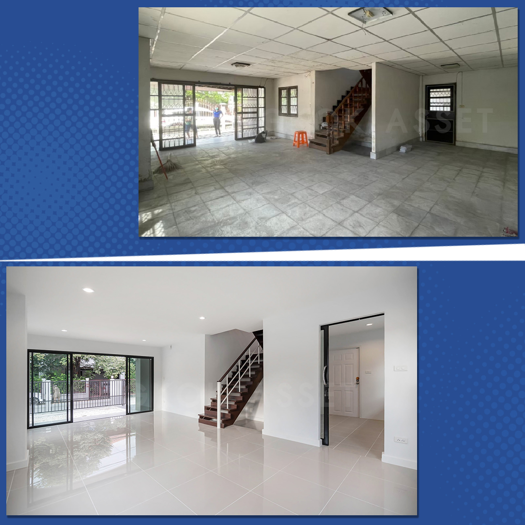 ภายในบ้านเราเปลี่ยนให้ใหม่หมด ทั้งฝ้าเพดาน ประตู หน้าต่าง พื้นแกรนิตโต้ รวมถึงระบบไฟฟ้าที่เราตรวจสอบ และเดินสายให้ใหม่ด้วย