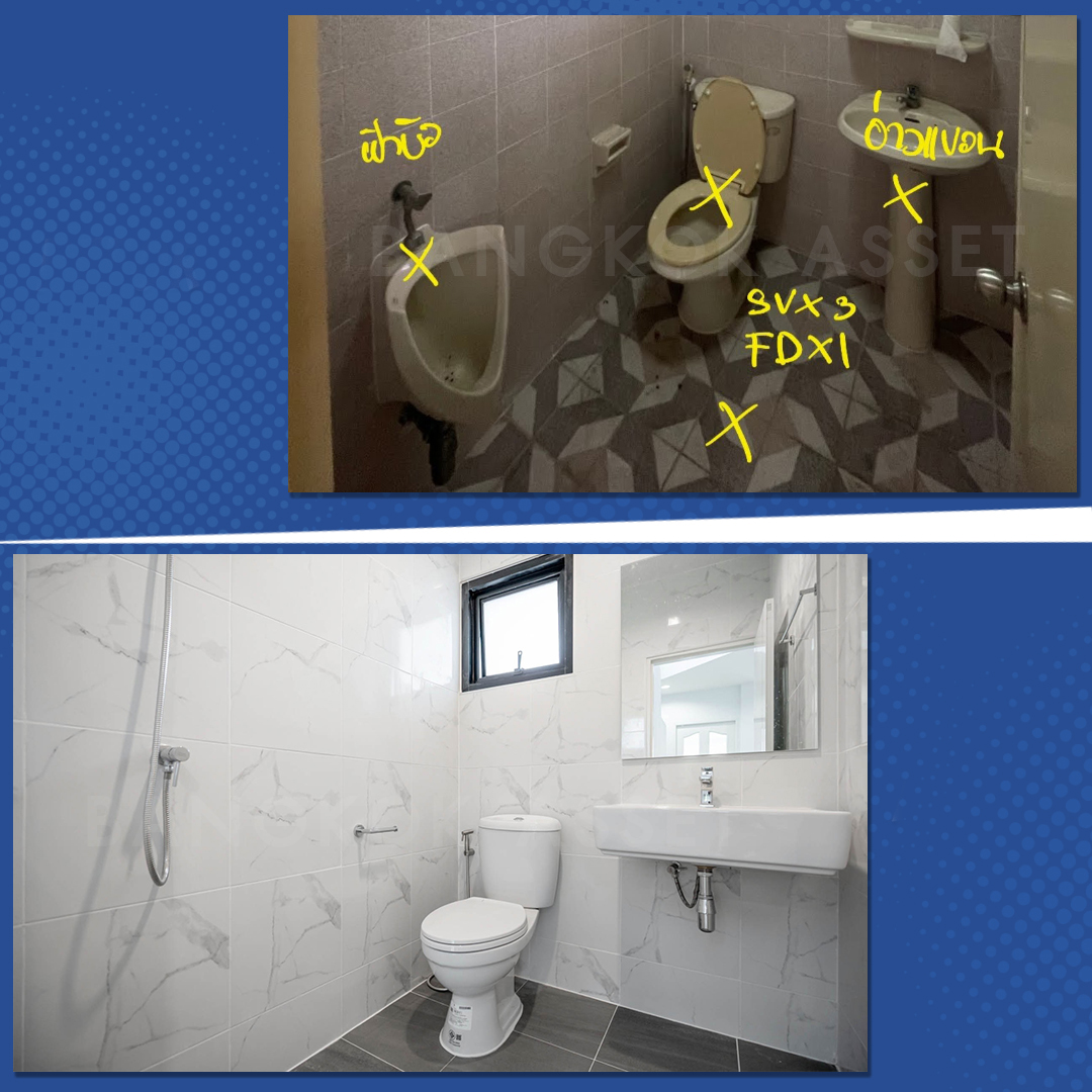 ห้องน้ำเรียกว่าทำให้ใหม่ทั้งหมด ไม่ว่าจะเปลี่ยนสุขภัณฑ์ใหม่ เปลี่ยนกระเบื้องผนังใหม่ เปลี่ยนกระเบื้องพื้นแบบกันลื่น และยังตรวจสอบระบบน้ำ ระบบไฟฟ้าให้พร้อมใช้งานได้อย่างดี ส่วนไหนใช้ไม่ได้เราเปลี่ยนให้ใหม่เลยครับ