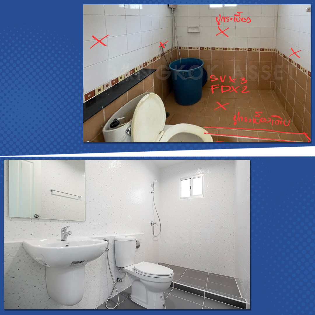 ห้องน้ำ เรียกว่าได้ห้องใหม่เลย เราเปลี่ยนสุขภัณฑ์และอุปกรณ์ใหม่หมด จนไม่เหลือของเดิม เปลี่ยนกระเบื้องพื้นแบบกันลื่นเพื่อความปลอดภัย และดูแลระบบน้ำ ระบบไฟฟ้าให้พร้อมใช้งานได้อย่างไม่มีปัญหา